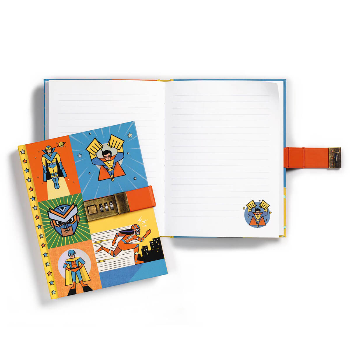 Ben Secret Code Notebook by Djeco. A secret notebook for writing and drawing all your secrets! This notebook has 88 lined pages, each illustrated with a little drawing. It features a code on the cover to keep all your stories safe from prying eyes.