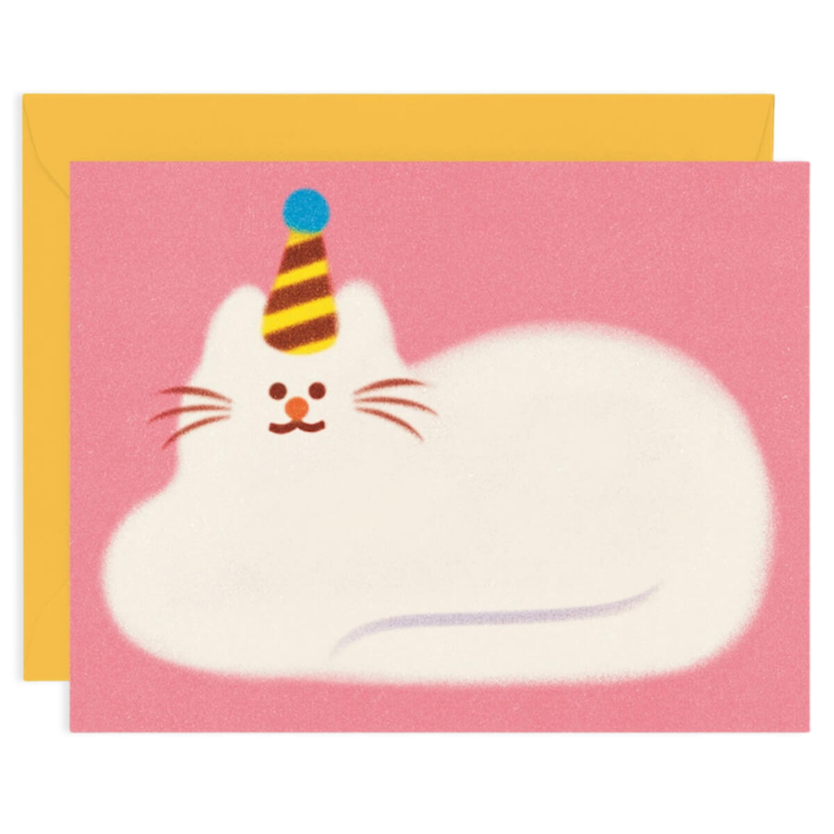 Birthday Cat greetings card by Zoey Kim for Wrap. This colourful kids birthday card features a cute cat ready for the party in a little party hat. Illustrated in Zoey Kim’s signature warm and fuzzy style. Blank inside with yellow envelope.
