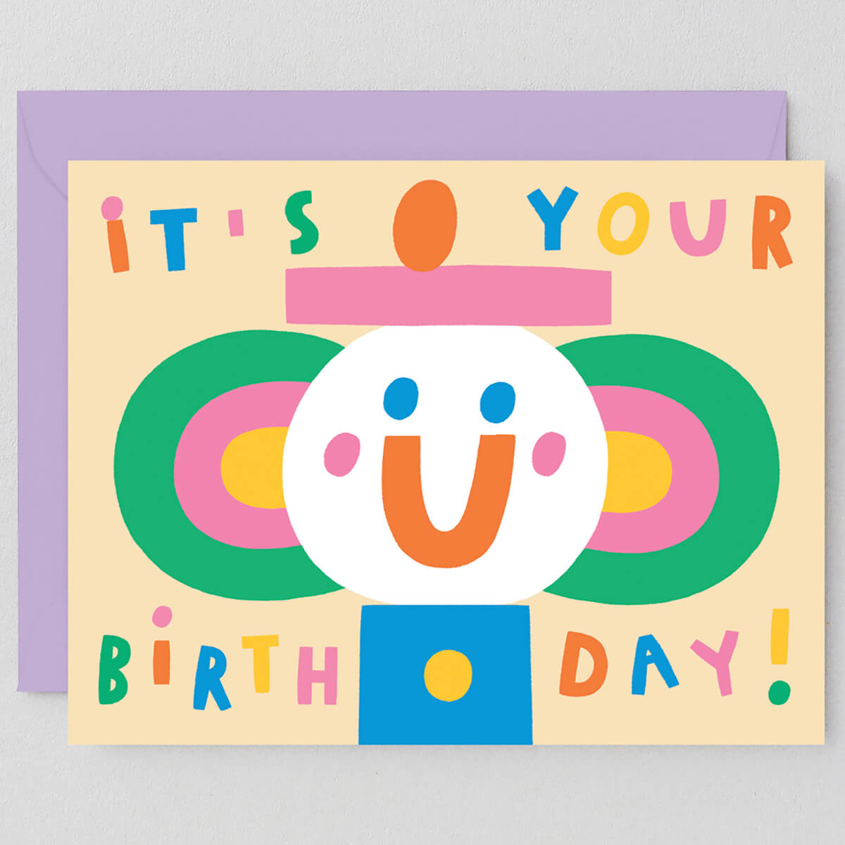 Birthday Smile greetings card by Susie Hammer for Wrap. Features an illustration by Susie Hammer. Blank inside with lavender envelope.