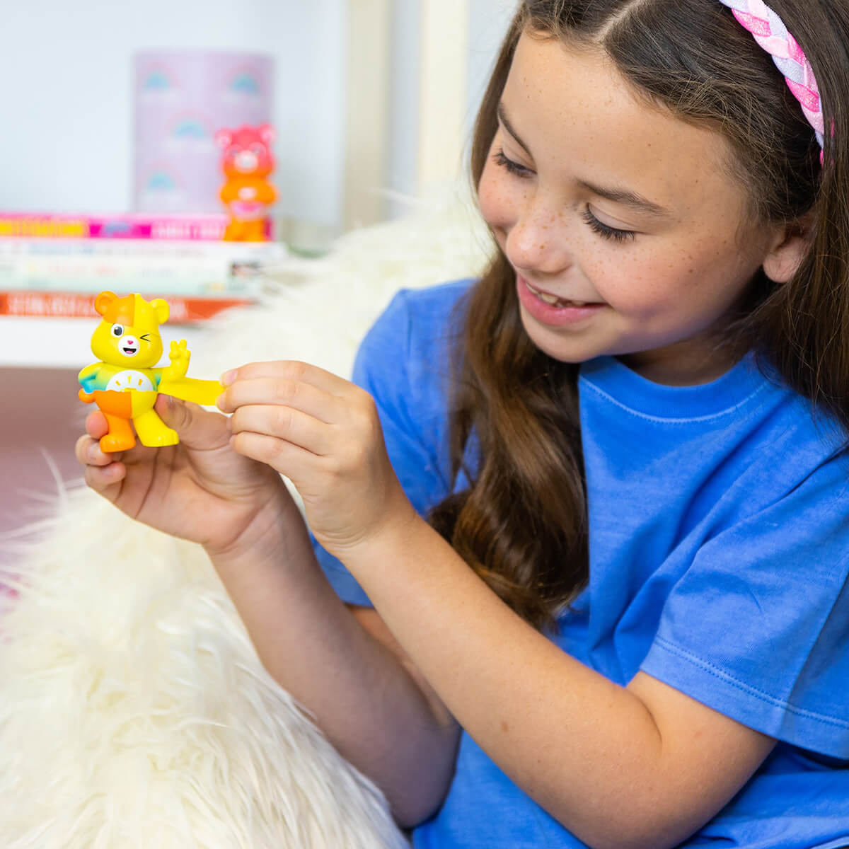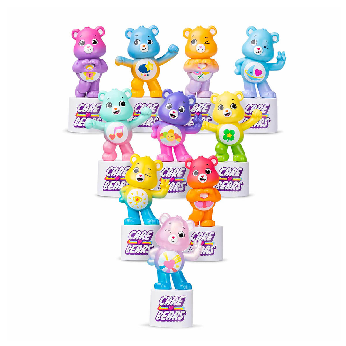 Care Bears Peel and Reveal Blind Box. Experience an new way to play with Care Bears – with the new Peel & Reveal Surprise Figures. Discover 10 Care Bears besties that are new to the Care Bears universe by peeling to reveal who they are. Simply peel away the multicolored coating to reveal these new 2.75” tall Care Bears collabs. Collect, play, and display – as each Peel & Reveal Surprise Figure comes in one of three different poses and with a display to place your new Care Bears bestie on once you’re done playing.