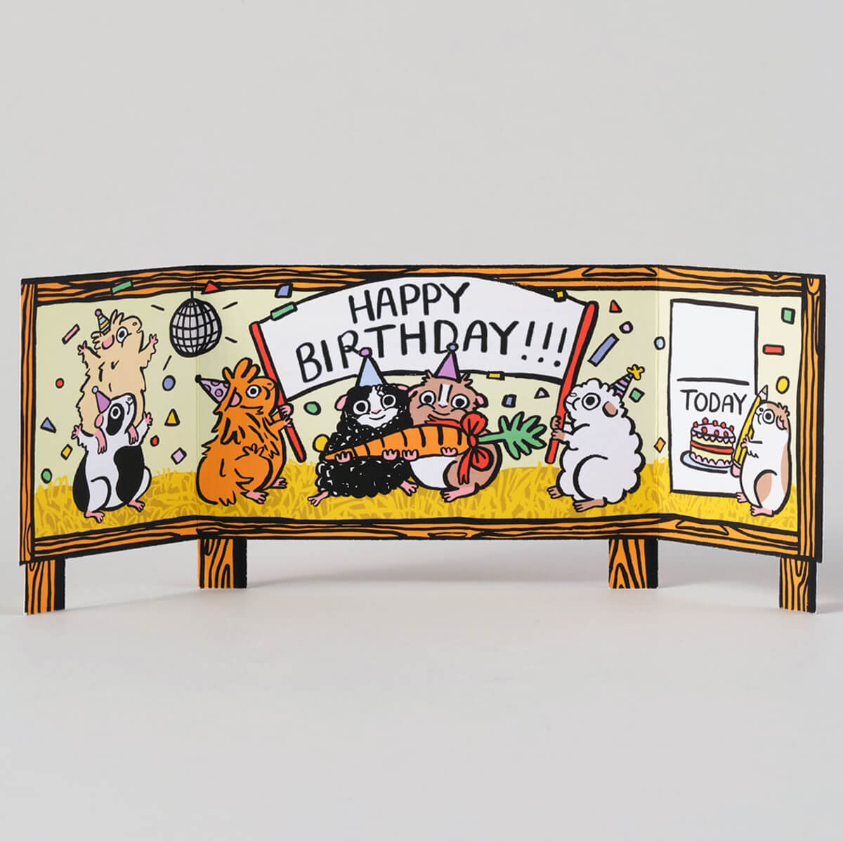 Guinea Pig Surprise Fold Out Birthday Greetings Card by Alice Bowsher for Wrap