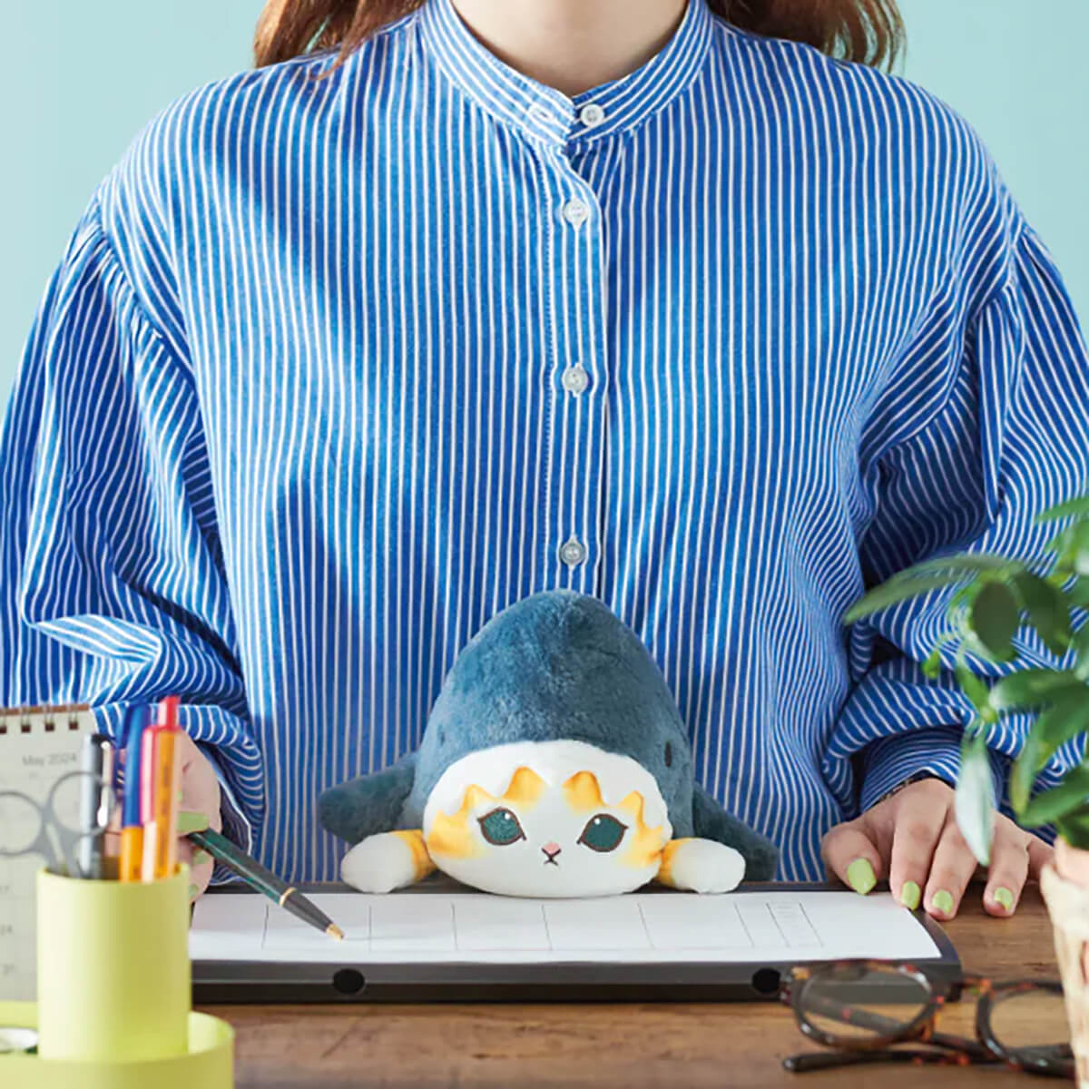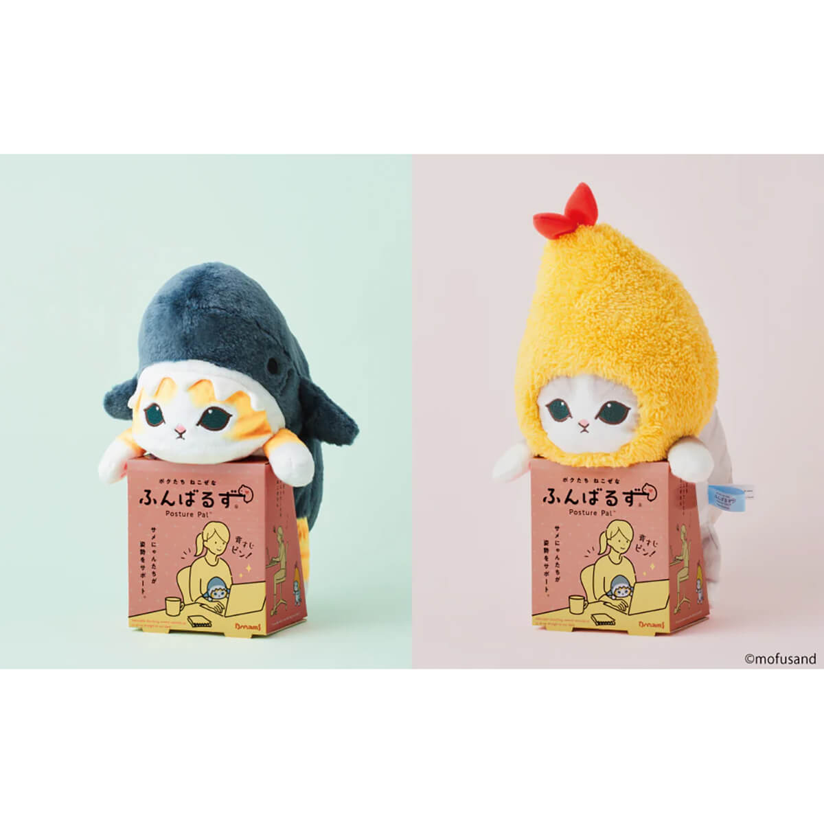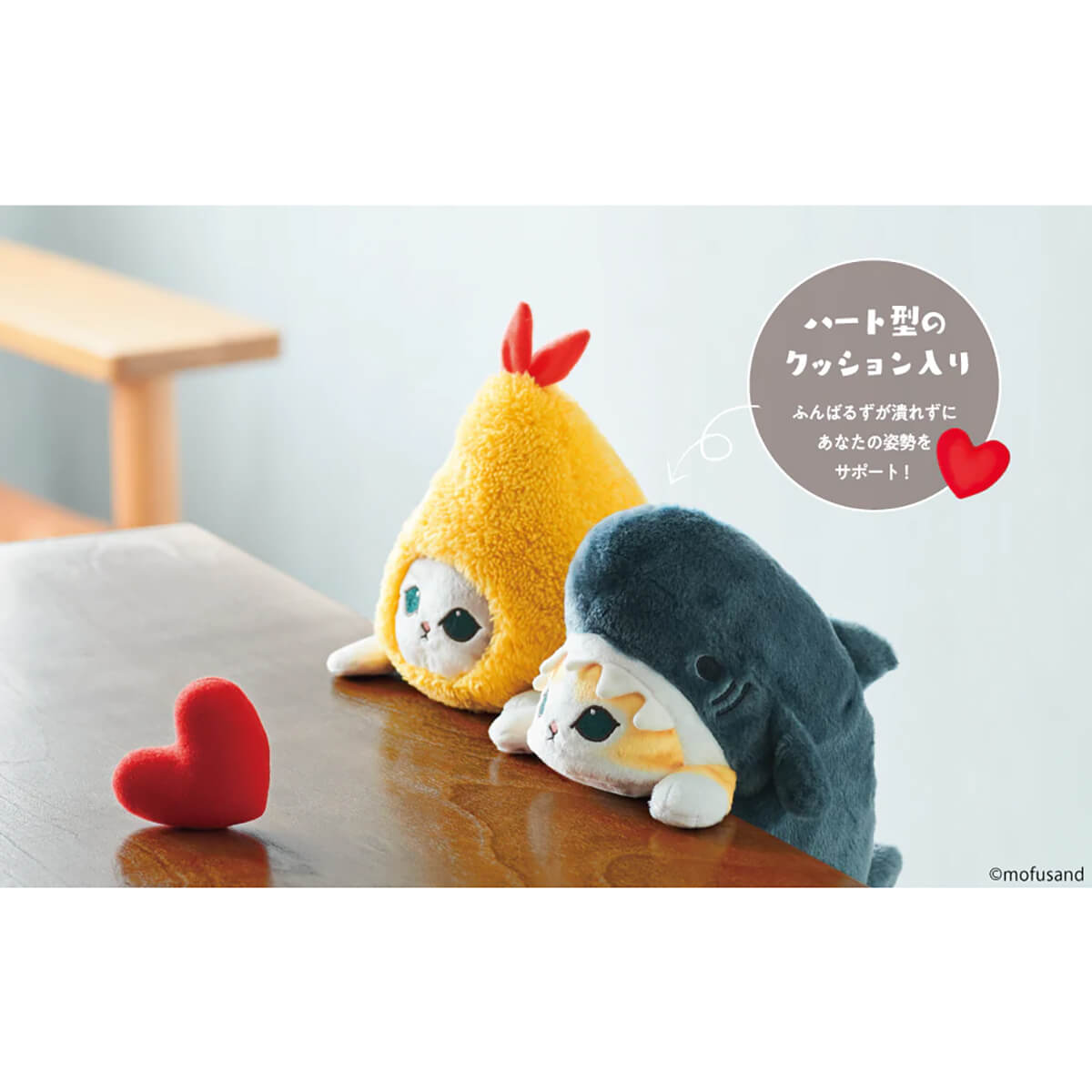 Shark Meow Posture Pal Mofusand (L) by Sonny Angel (Dreams). An adorable stuffed toy that encourages proper posture while sitting at your desk. Posture Pals (Funbaruzu in Japanese) are not only super cute but will also help you maintain good posture while seated. This cute little animal can be placed between your desk and your tummy to stop you slouching. With such an adorable appearance, they will support you as you work and study. Place your Posture Pal firmly between the tummy and the desk, which naturally elongates the back muscles, resulting in good posture. Inside the plush toy is a heart-shaped cushion that provides firm support for the posture that can be easily slumped forward during long hours at the desk, reducing fatigue while working or studying. Their soft fur makes you want to stroke them, and their dull eyes and adorable expressions will heal you. Official Sonny Angel / Dreams product in collaboration with Mofusand Japan.
