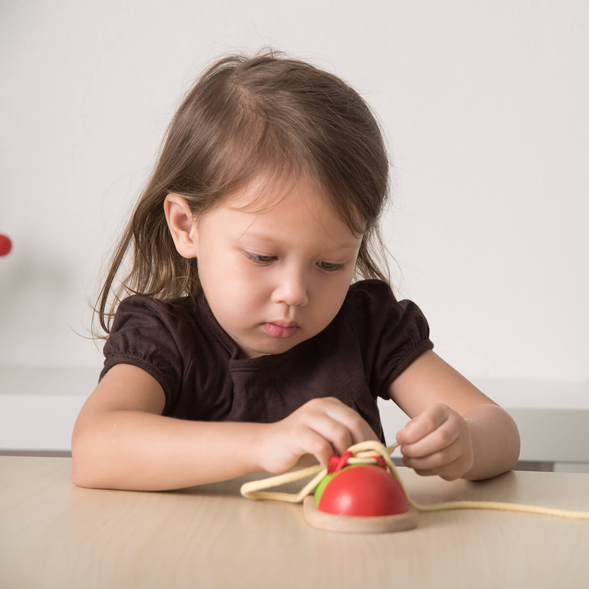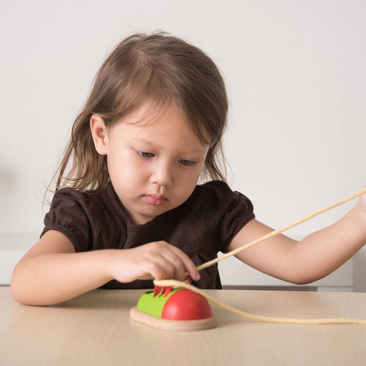 Tie Up Shoe by PlanToys.  Learn how to tie your shoes! The laces on this wooden shoe can help little ones develop their hand-eye coordination and fine motor skills so they can tie their shoes on their own one day.