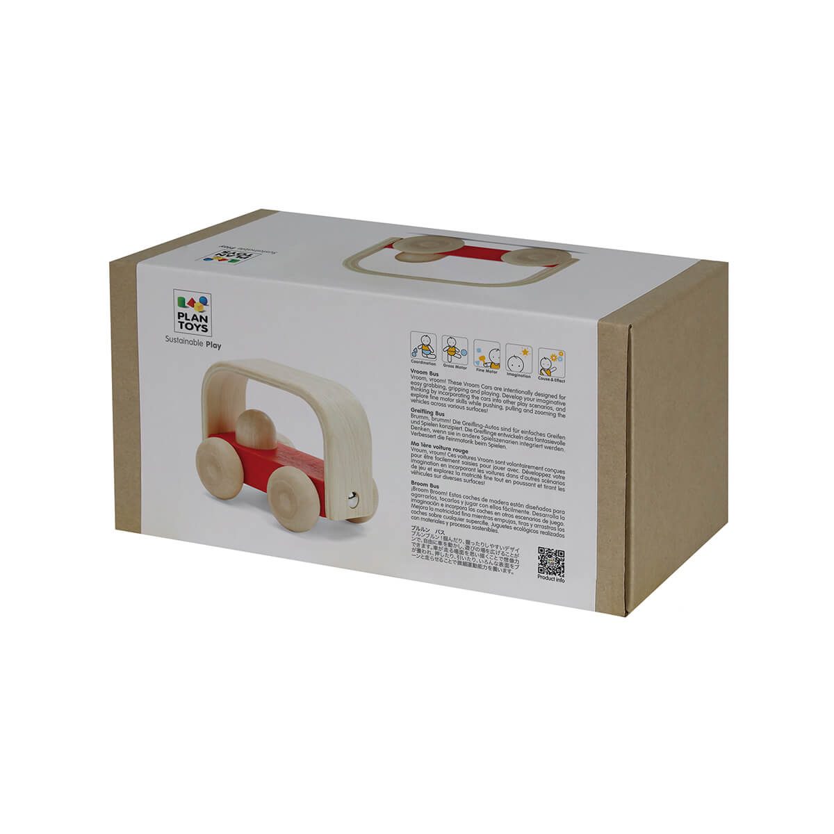 Vroom Bus by PlanToys.  Vroom, vroom! These Vroom Cars are intentionally designed for easy grabbing, gripping and playing. Develop your imaginative thinking by incorporating the cars into other play scenarios, and explore fine motor skills while pushing, pulling and zooming the vehicles across various surfaces!