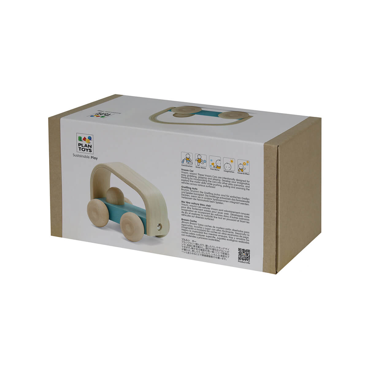 Vroom Car by PlanToys. Vroom, vroom! These Vroom Cars are intentionally designed for easy grabbing, gripping and playing. Develop your imaginative thinking by incorporating the cars into other play scenarios, and explore fine motor skills while pushing, pulling and zooming the vehicles across various surfaces!