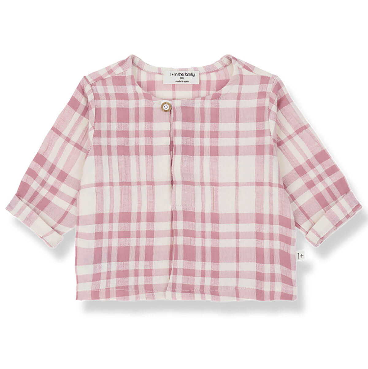 Ter Shirt by 1+ in the Family. A soft cotton-linen blend baby shirt with a front pleat detail and wooden button fastening.