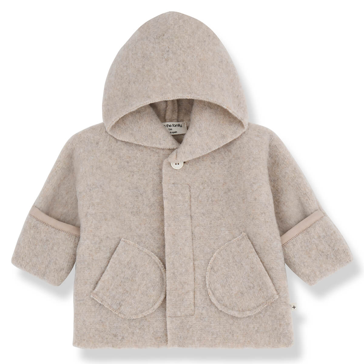 Jannick Jacket by 1+ in the Family. Cosy wool-blend baby coat with a hood and patch pockets.
