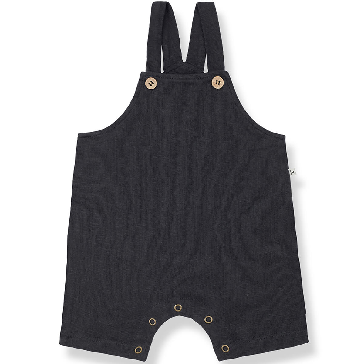 Rocco Overall by 1+ in the Family. Sweet baby dungarees in a slub cotton fleece fabric. With wooden and snap button fastenings and a back pocket.
