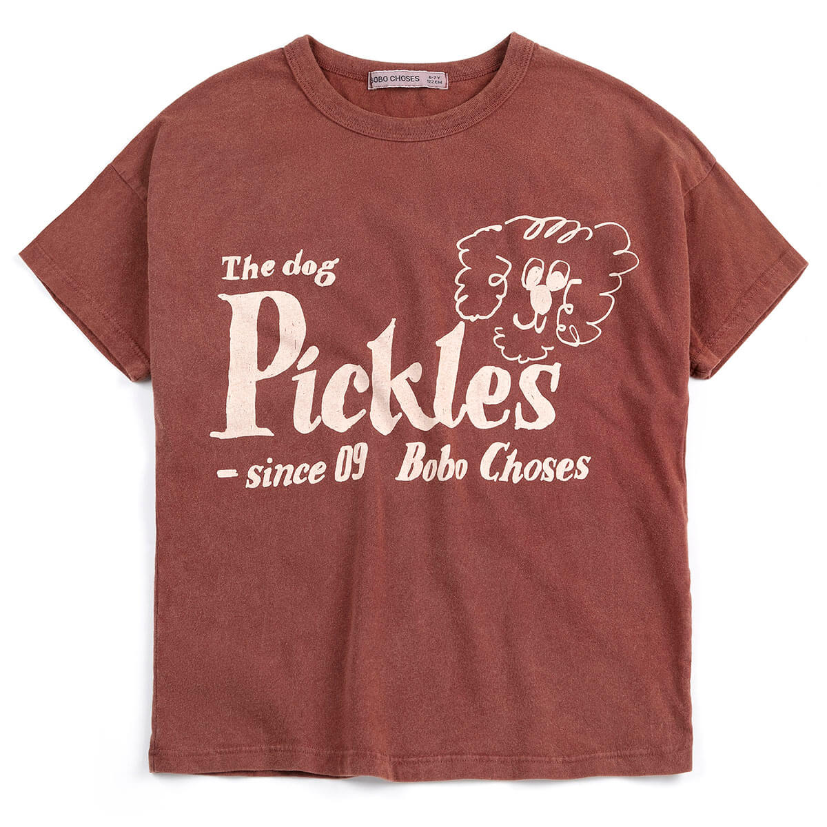 Pickles The Dog T-Shirt by Bobo Choses. Brown loose-fit tee with short sleeves and a round neck.
