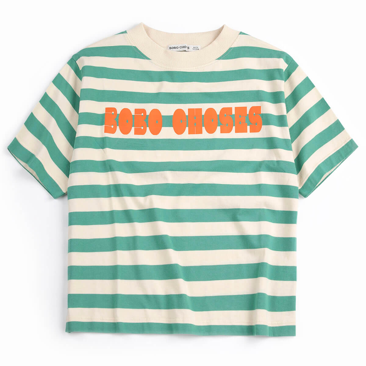Bobo Choses Modern Striped T-Shirt by Bobo Choses. Relaxed fit tee in off white, featuring short sleeves and a round neck.