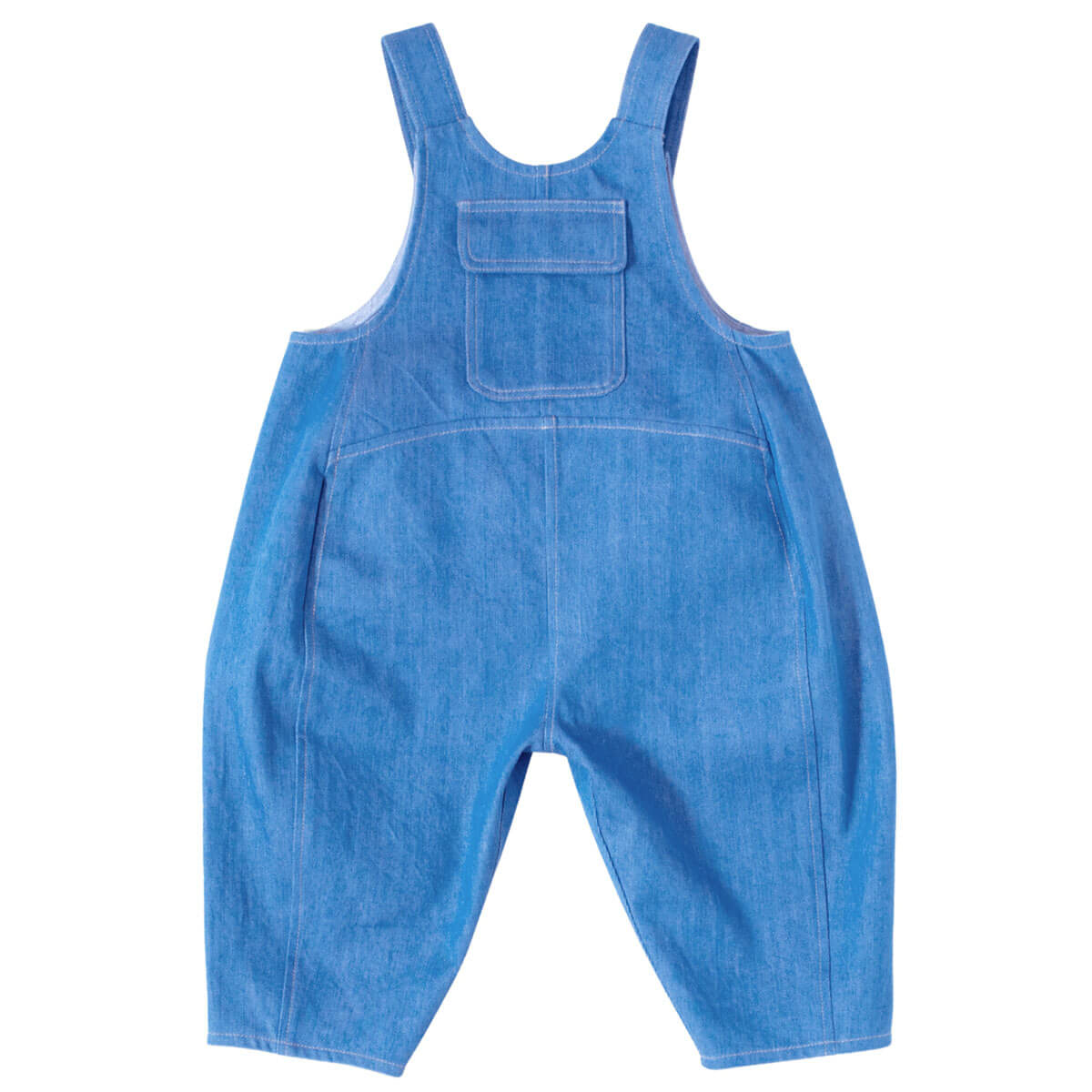 Kai Oversized Dungarees by Studio Koter. Oversized denim overalls made from 100% organic cotton. These timeless, modern and unisex dungarees feature a relaxed wide-leg silhouette with thoughtfully designed curved seams and practical utility pockets. Sustainably made in the UK, perfect for conscious parents who value both style and durability.