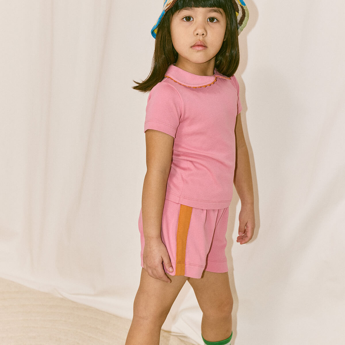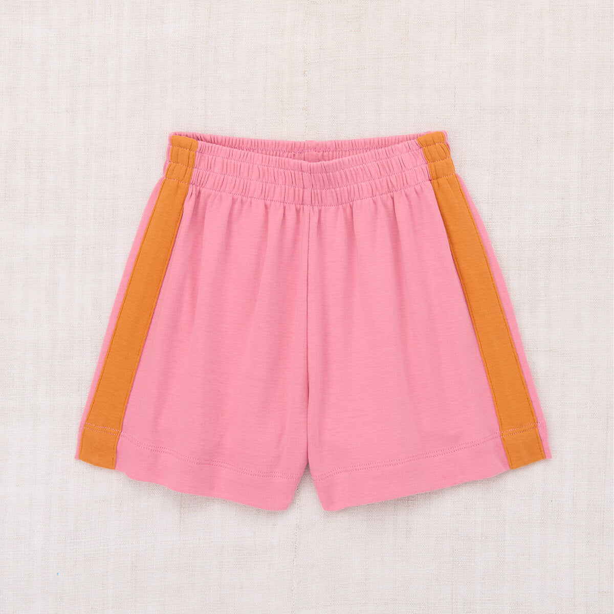 Resort Short by Misha & Puff. Vintage-style pull-on shorts in organic Pima cotton, with an elastic waistband and contrast appliqué striped sides.