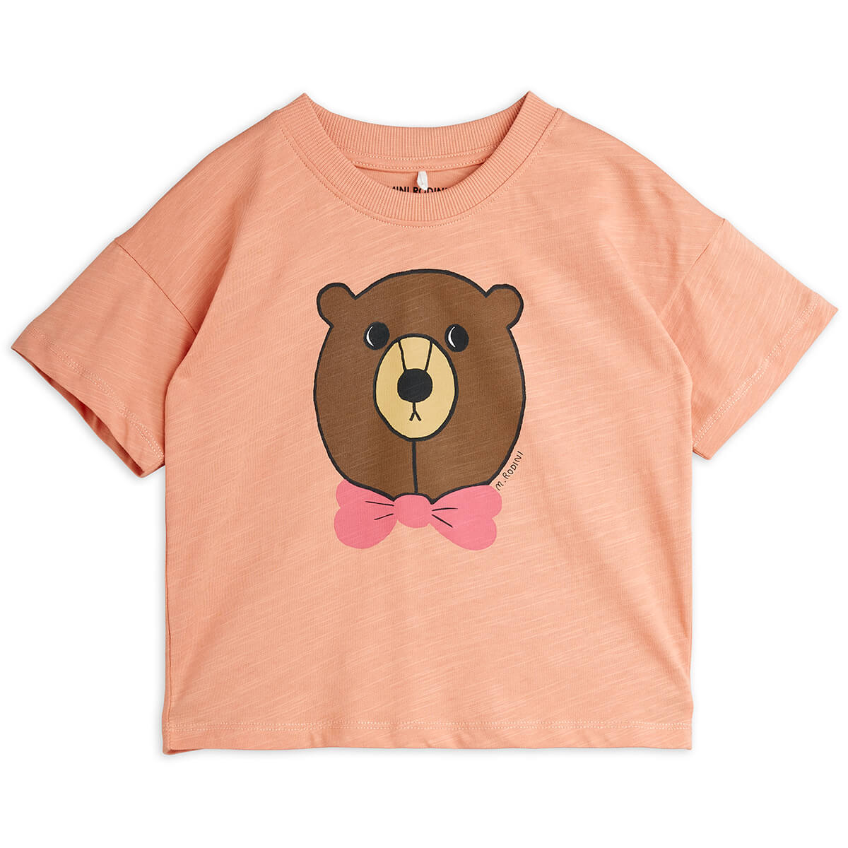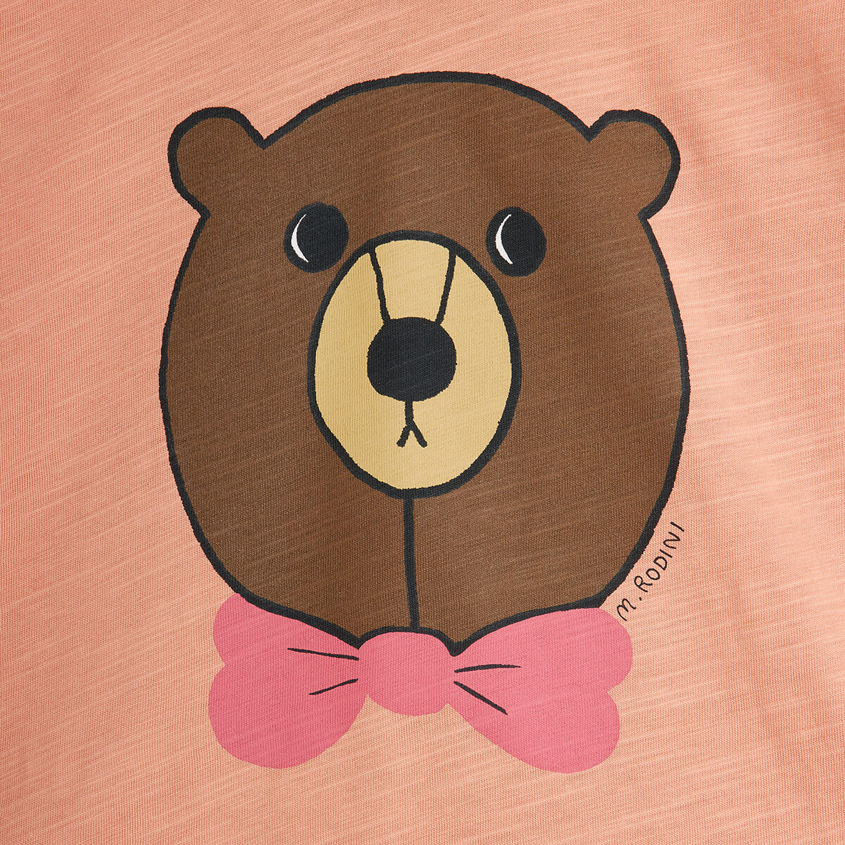Bear Tee by Mini Rodini. Pink t-shirt, featuring a ribbed neck and large bear design.