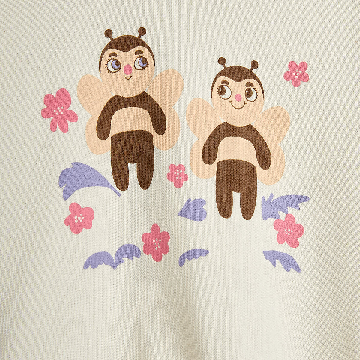 Bees Sweatshirt by Mini Rodini. Soft sweatshirt made from 100% GOTS certified organic cotton, featuring a single print of bees on the front. Designed with a relaxed fit, ribbed trims, and a classic crew neckline for comfort and style, making it perfect for everyday wear.