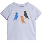 Birds t shirt by Mini Rodini. Snug-fitting T-shirt made from organic cotton with a hint of stretch. Features a multicoloured bird print on the front and is finished with binding at the neck.