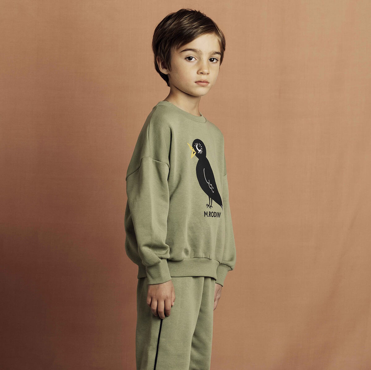 Blackbird Sweatshirt by Mini Rodini. Sweatshirt made from 100% GOTS certified organic cotton, featuring a single blackbird print on the front. Designed with a regular fit, ribbed neckline, cuffs and hem. Soft and comfortable.