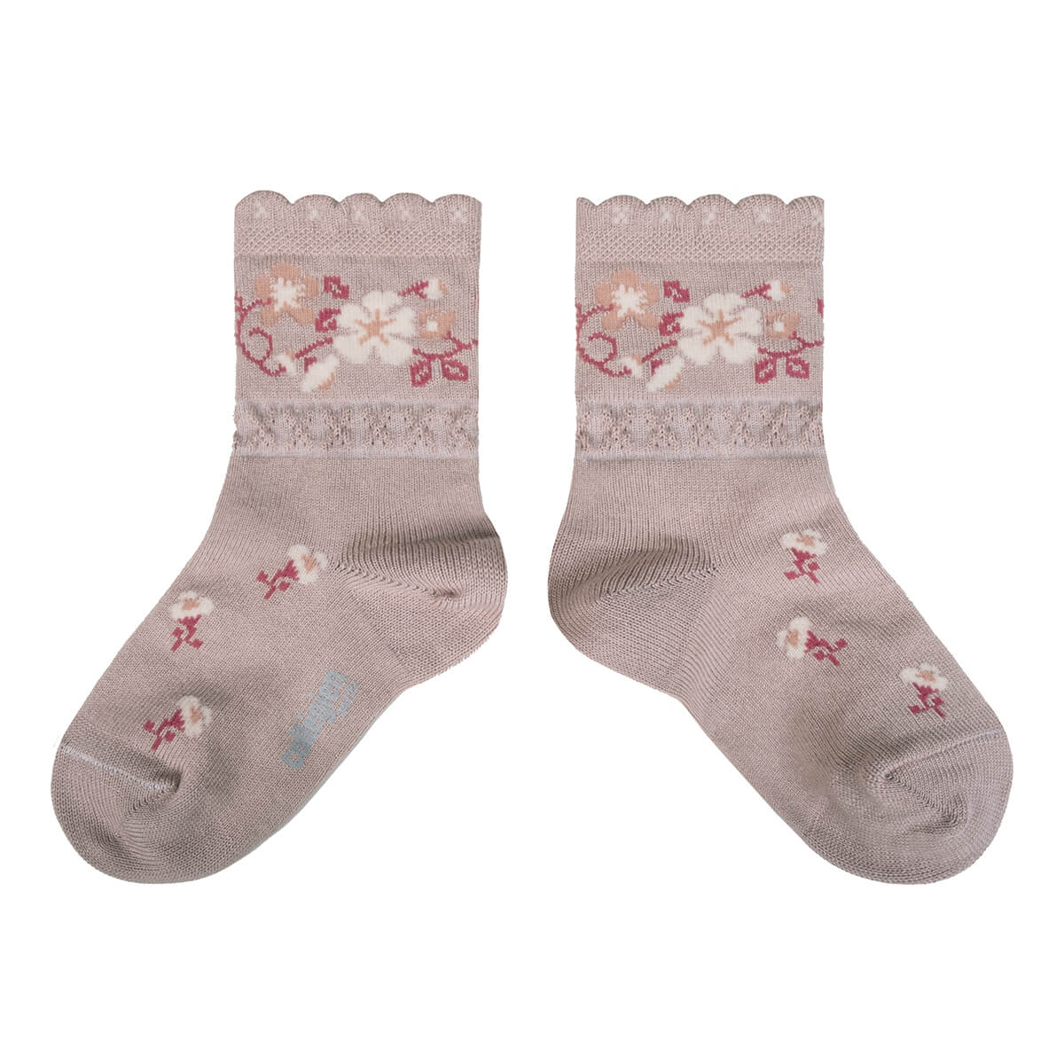 Camélia Jacquard Flower Ankle Socks in Vieux Rose by Collegien
