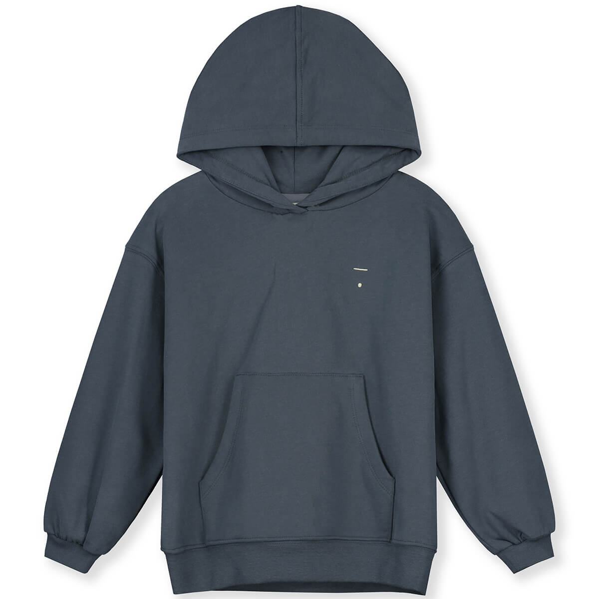 Hoodie sweater by Gray Label. Long-sleeved hooded sweatshirt with kangaroo pocket at the front, made from soft organic cotton fleece. It has an oversized fit, dropped shoulders, hood, and ribbed cuffs and hem.