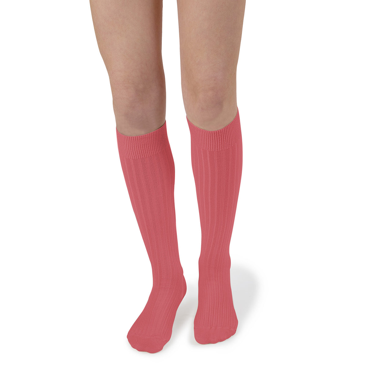La Haute Ribbed Knee High Socks in Rose Litchi by Collegien