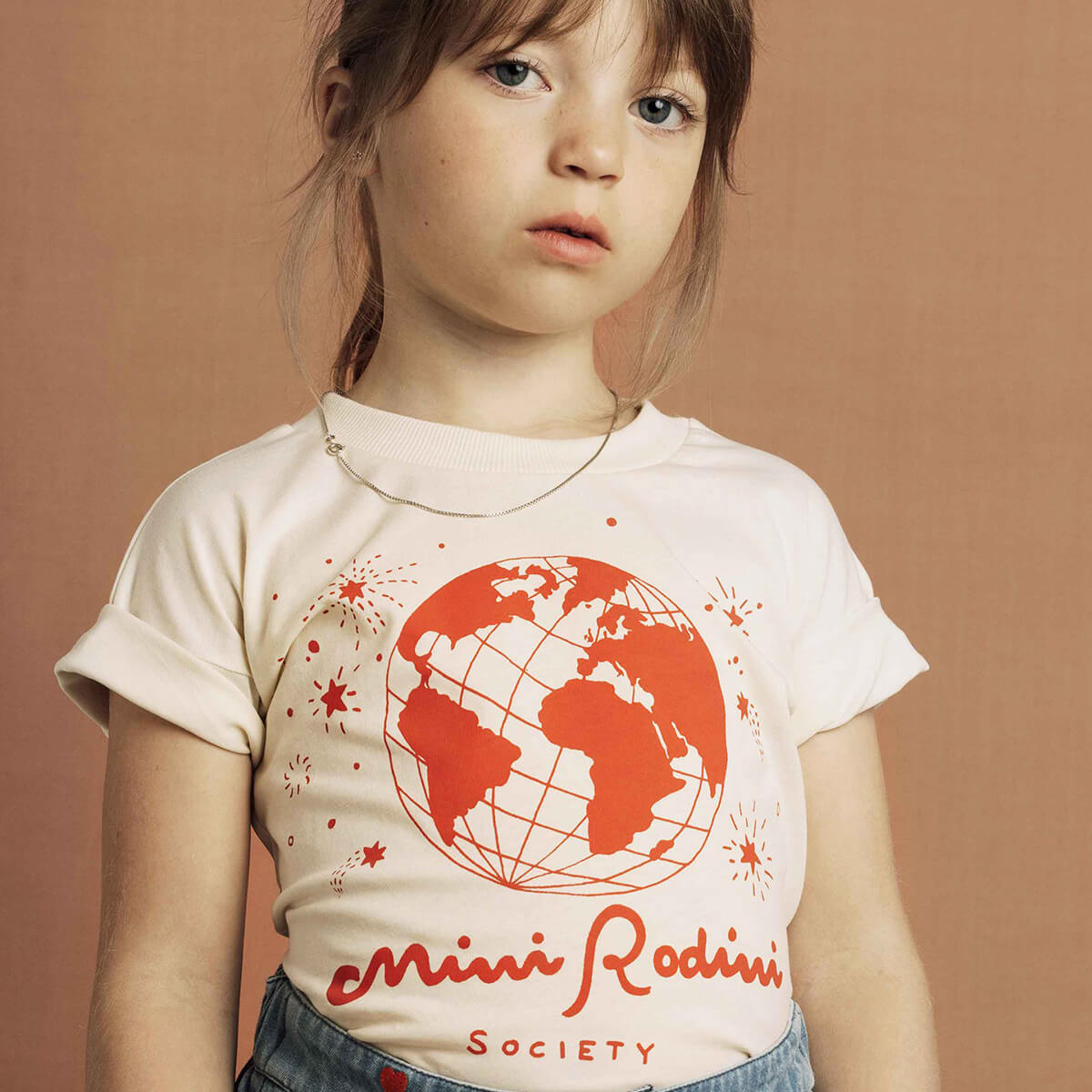 Mini Rodini Society Tee in Off White by Mini Rodini