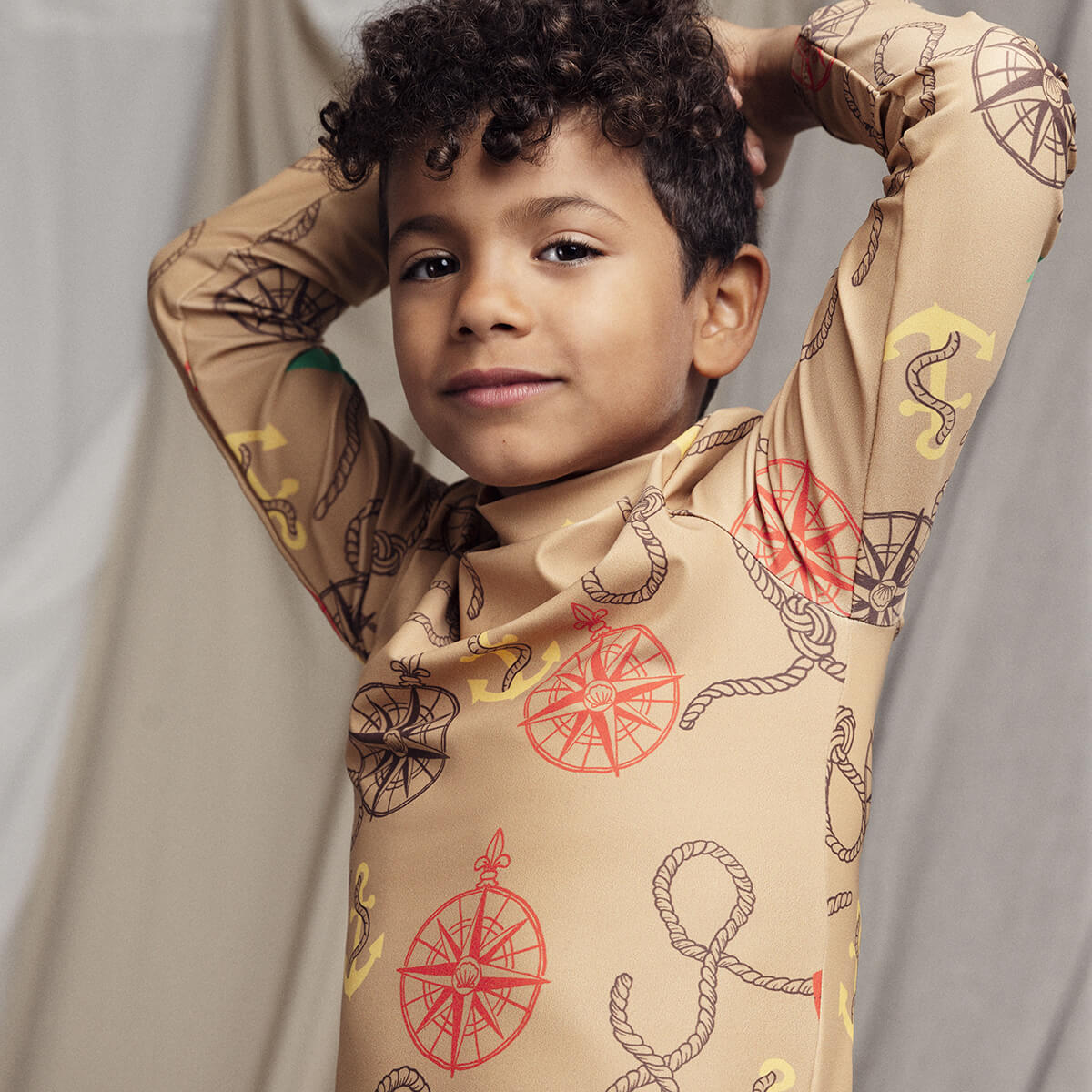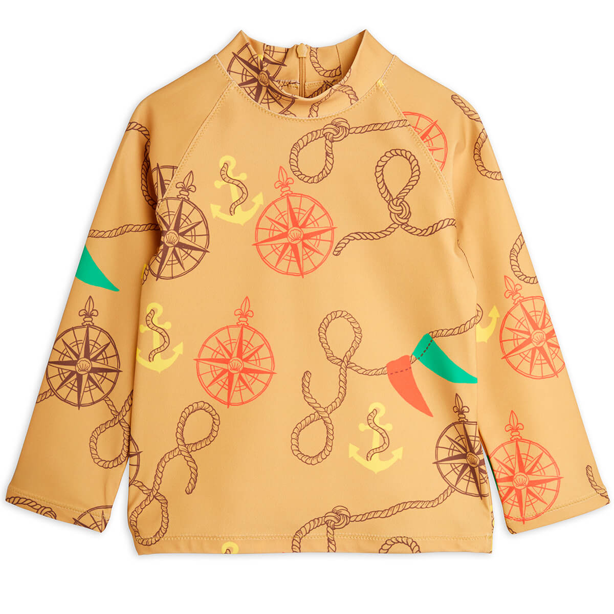 Nautical AOP UV Swim Top by Mini Rodini. Long sleeve swim top with UV 50+ protection, high neck and zipper closure.