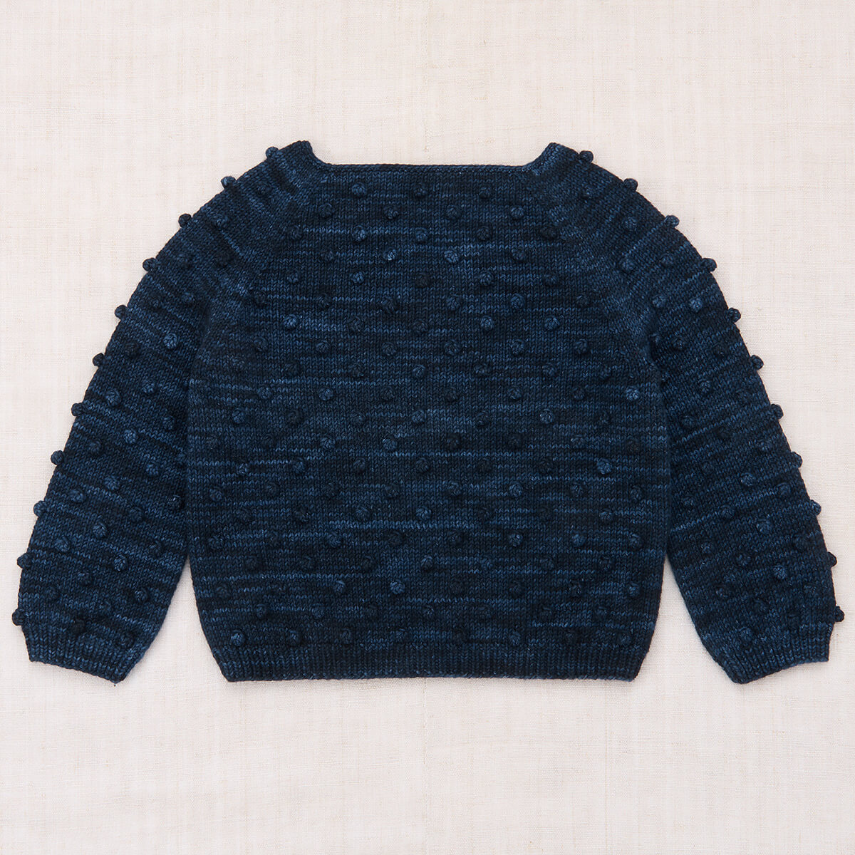 Original Popcorn Sweater by Misha & Puff. Misha & Puff's signature hand-knit sweater in a heavier-weight wool, with an all-over popcorn stitch. Featuring a rolled bateau neckline, ribbed cuffs and hem, and horn button closure at the back neck.