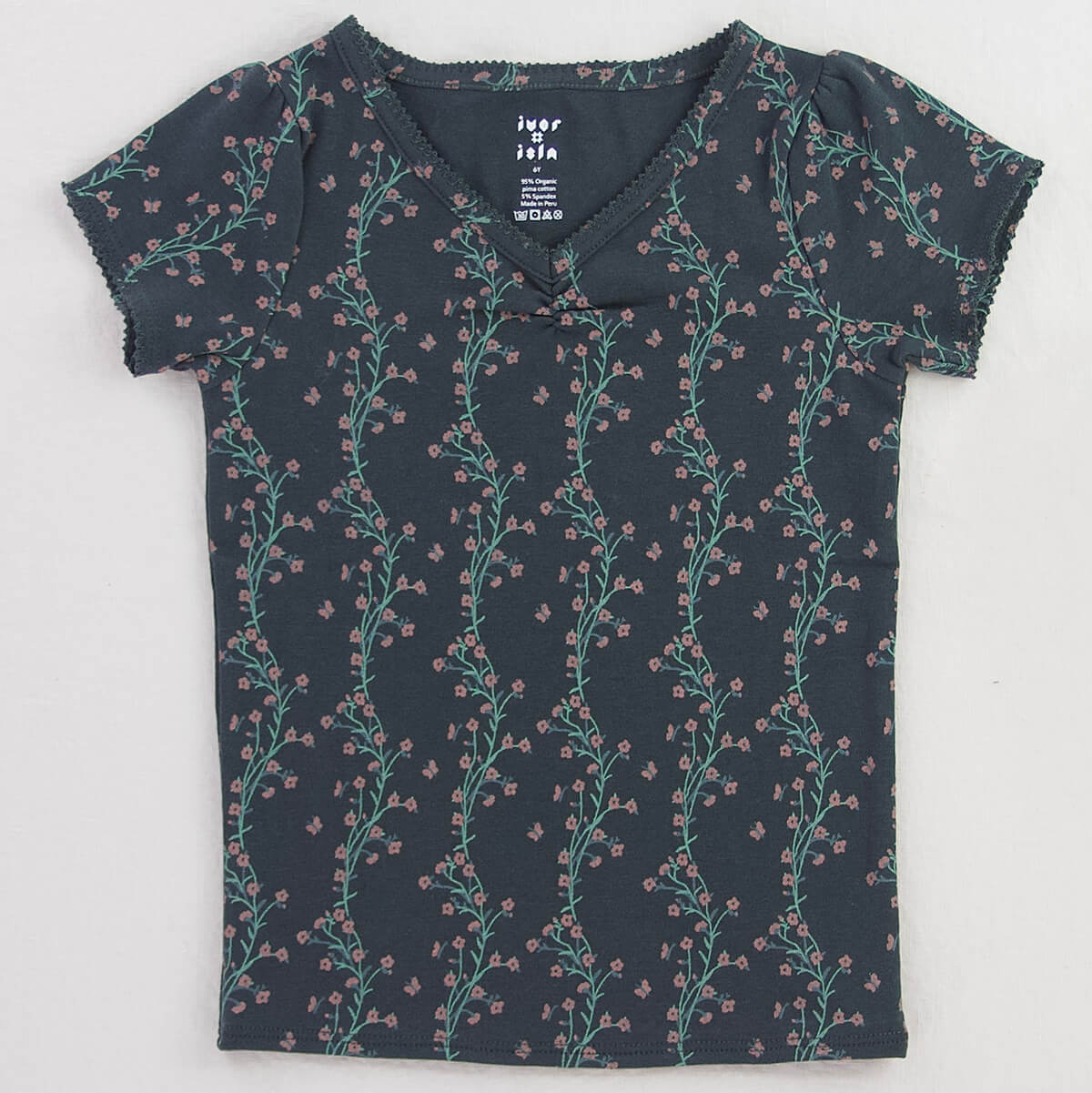 Pima Ruched Tee by Iver & Isla. A short sleeved t shirt with pretty ruching detail and a seasonal print.