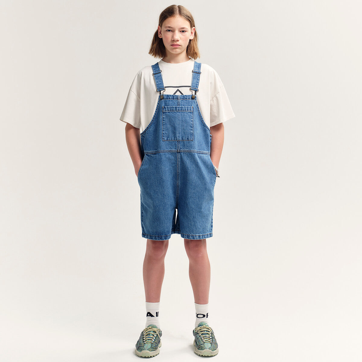 Short Dungaree in Stonewash Blue Denim by Main Story