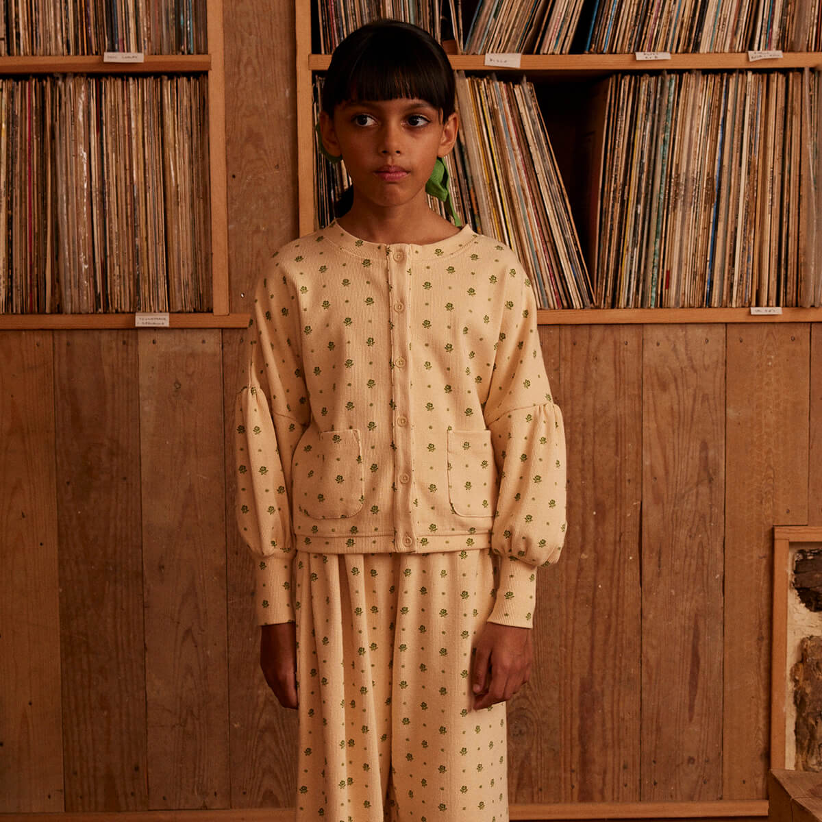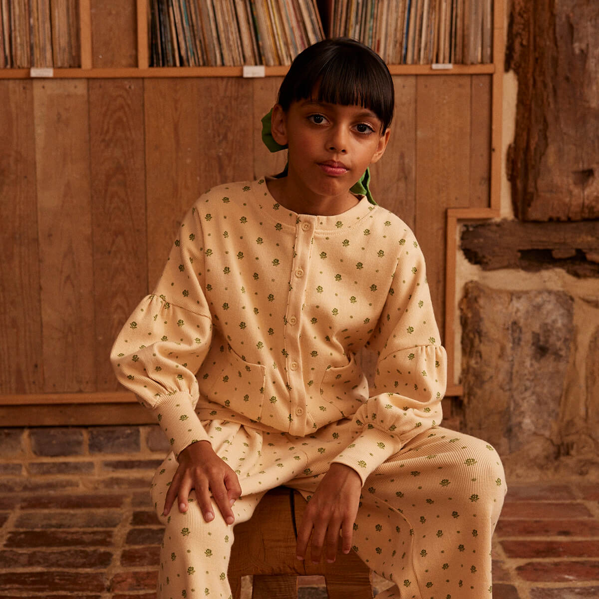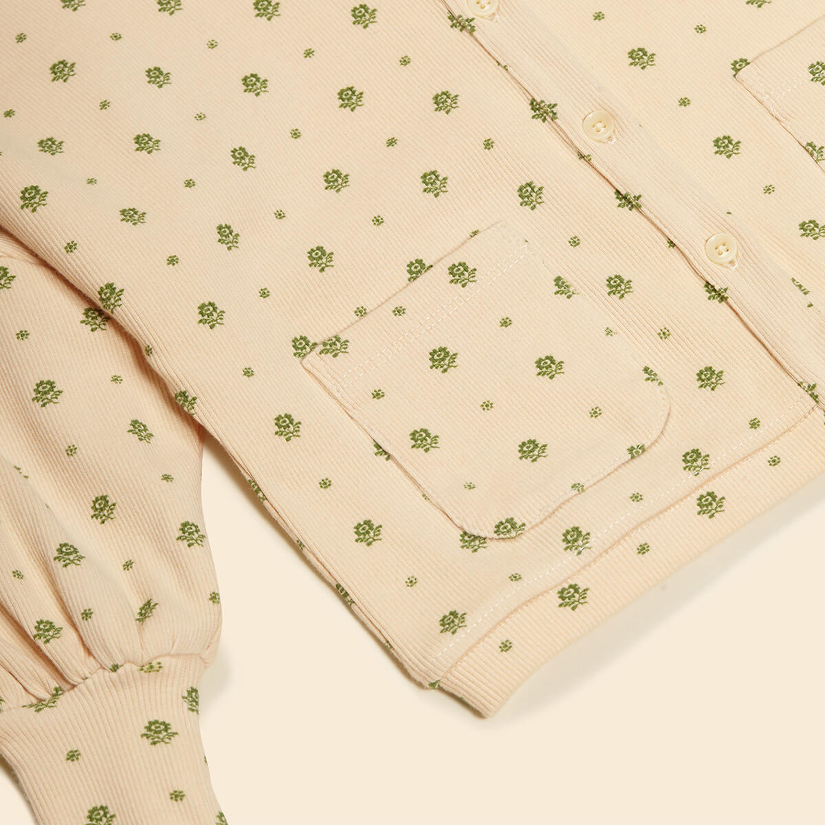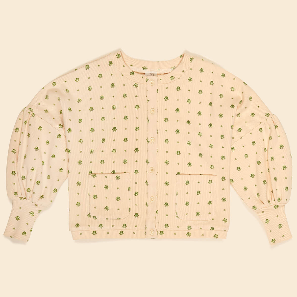 Simona Jersey Cardigan by Apolina. The Simona cardigan features voluminous sleeves with Apolina’s signature vintage mood. Featuring a pretty ‘meadow calico’ print on the softest ribbed jersey, Simona is an easy, everyday extra layer. Style her over dresses, or mix and match with leggings or trousers.