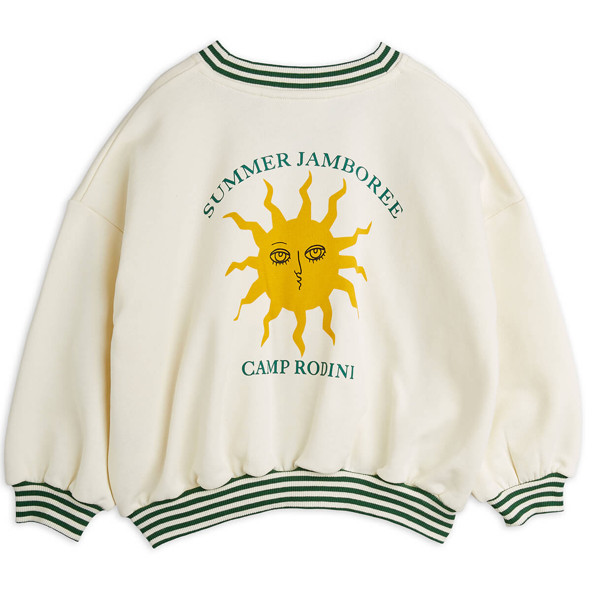 Sun Sweatshirt by Mini Rodini. Relaxed fit sweatshirt made from 100 % GOTS-Certified organic cotton. Designed with a ribbed V-neck and striped cuffs.