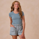 Teen Pointelle Tee in Ocean by Rylee & Cru - Last Ones In Stock - 14-16 Years