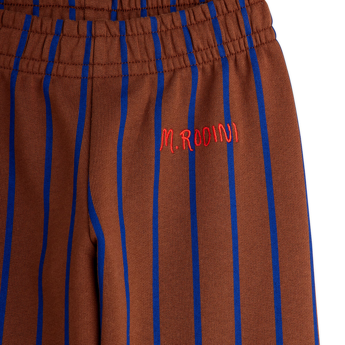 Vertical Stripe AOP Sweatpants by Mini Rodini. Brown joggers made from 100% orgainc cotton, featuring an elasticated waist and elasticated cuffs.