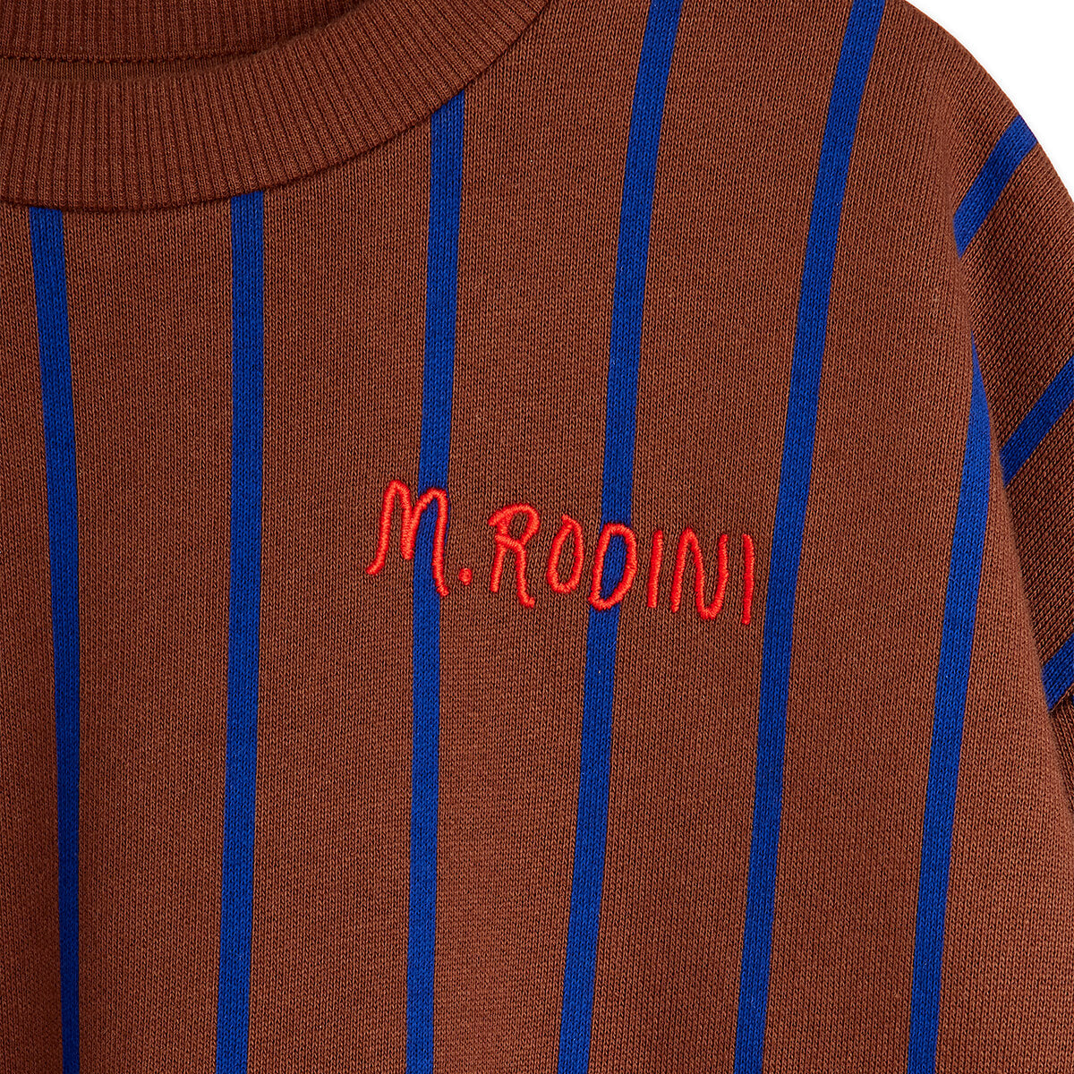 Vertical Stripe AOP Sweatshirt by Mini Rodini. Brown sweatshirt made from 100% organic cotton featuring a ribbed hem and cuffs and a relaxed fit.