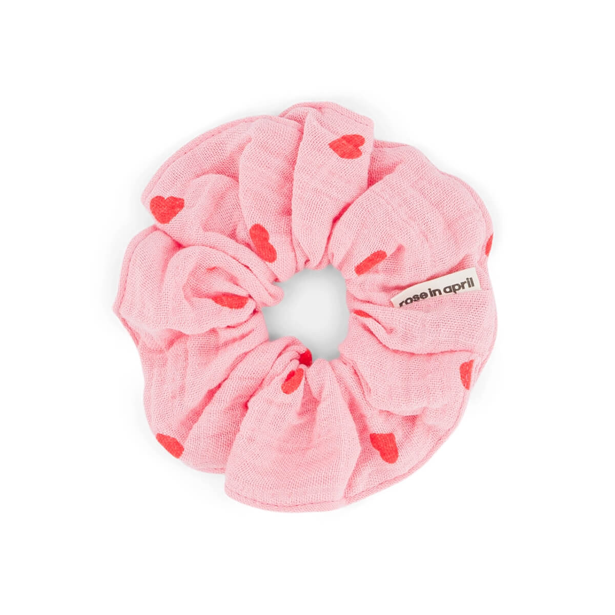 Scrunchie by Rose in April. The heart scrunchie, a pretty accessory to wear in your hair or on your wrist! Made from 100% cotton muslin.