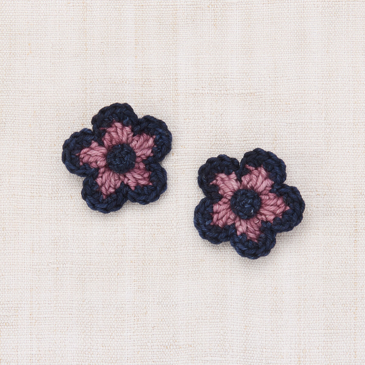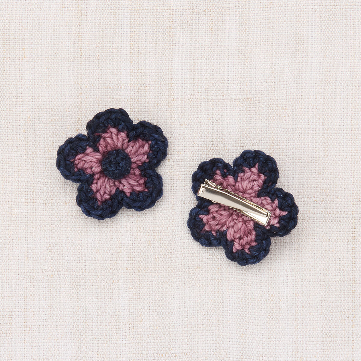 Medium Flower Clip Set by Misha & Puff. A hand-crocheted flower clip set in Merino wool, mounted on alligator clips. A little pop of embellishment for any look.