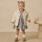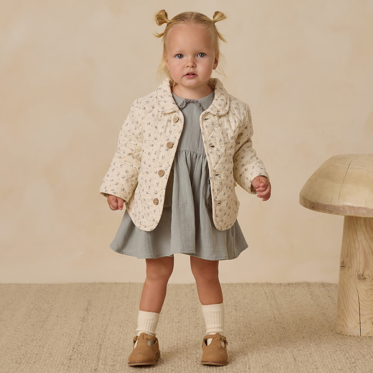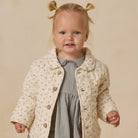 Quilted Jacket by Quincy Mae. Cosy quilted jacket with a sweet peter pan collar and coconut buttons down the front, designed to keep your little one warm and stylish.