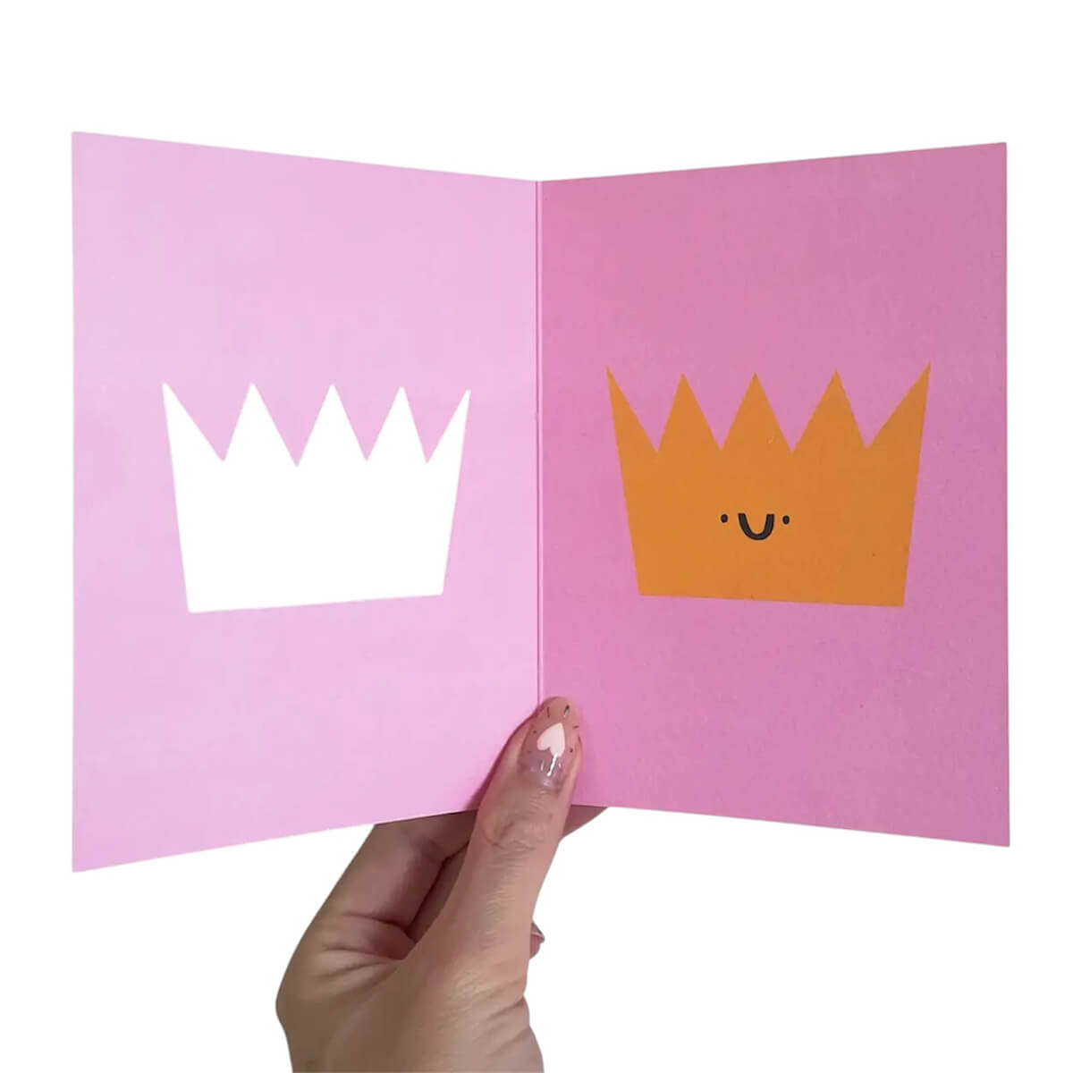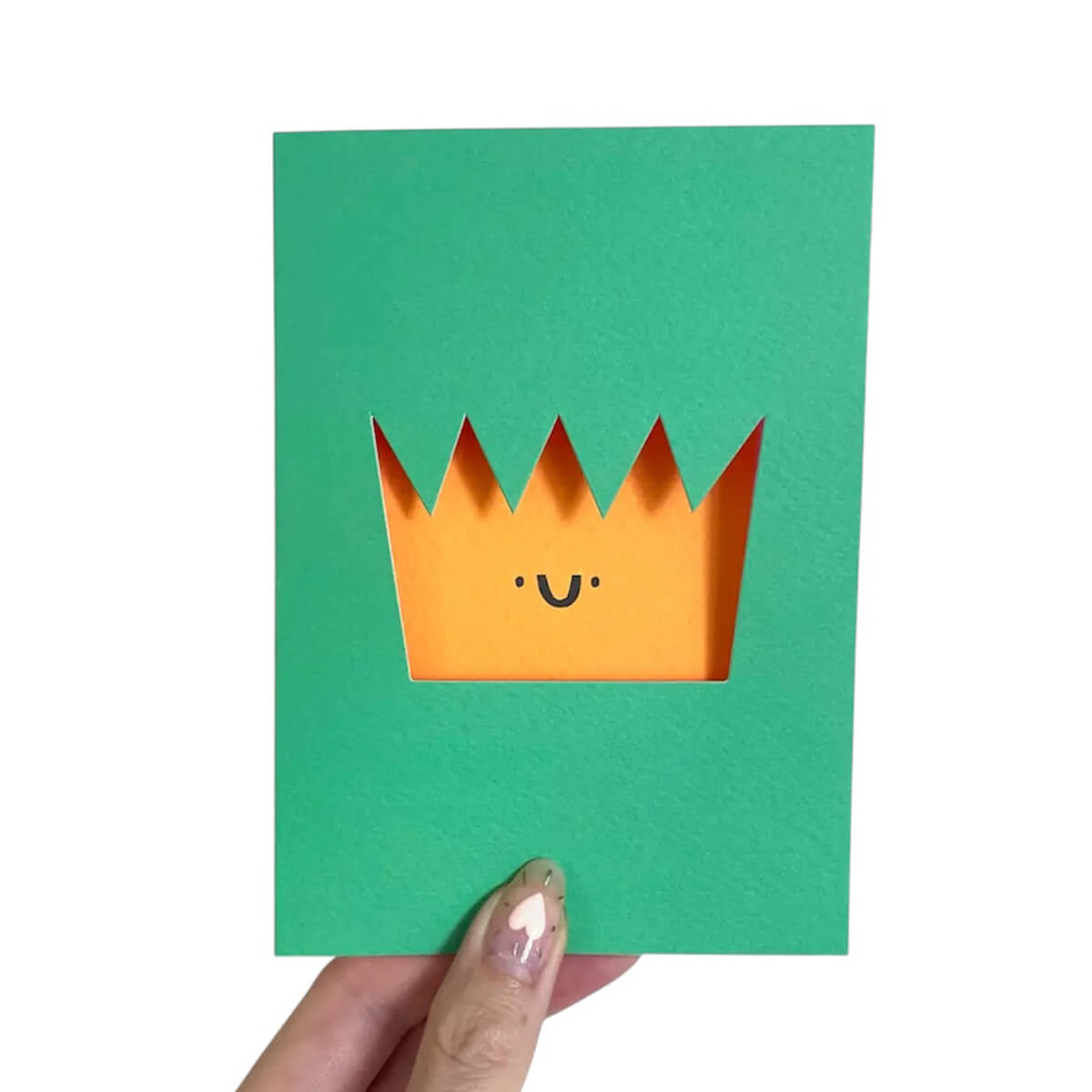 Crown Greetings Card by Rumble Cards. Die cut greetings card. Blank inside for your own message.