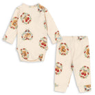 Basic Newborn Christmas Set by Konges Sløjd. Basic newborn set with a matching bodysuit and leggings made from organic cotton with a hint of stretch. Designed with press buttons along the side for easier dressing.