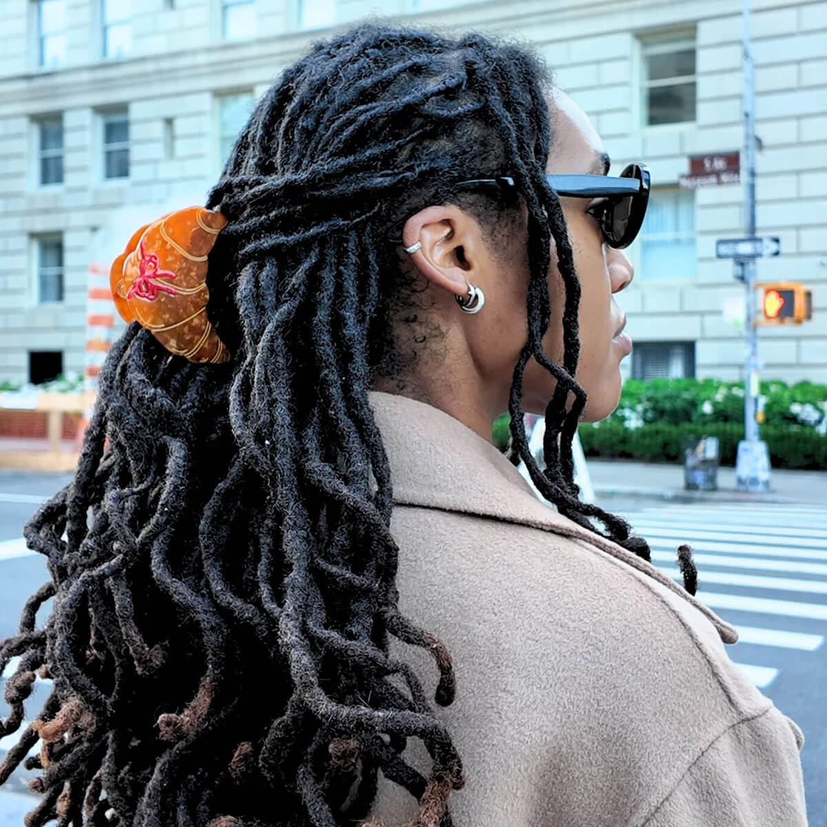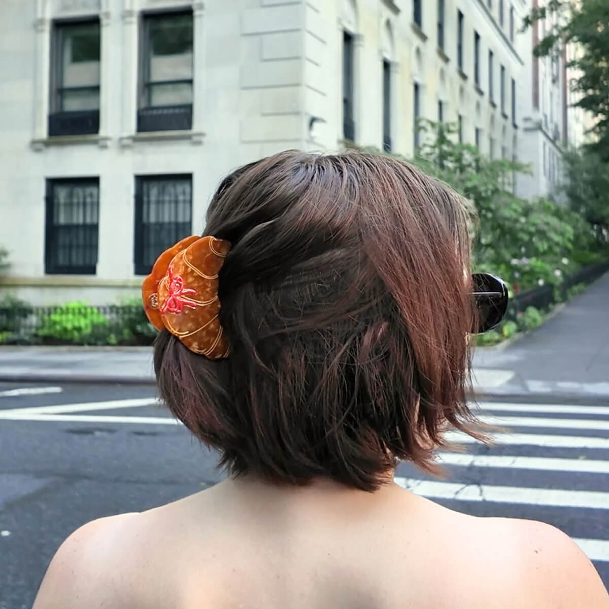 Bow Croissant Hair Claw by Solar Eclipse. Hand-painted by the Solar Eclipse artists, the original bow croissant hair claw clip is crafted in small batches. It's designed to upgrade your routine and be treasured for years to come. Designed in New York City, this clip is double-sided, for a perfect look from all angles. Handmade with the signature biodegradable acetate made from recycled wood pulp, it effortlessly holds hair for a secure all-day style. Features an extra strong hinge, promoting long-lasting styles for all-day wear.