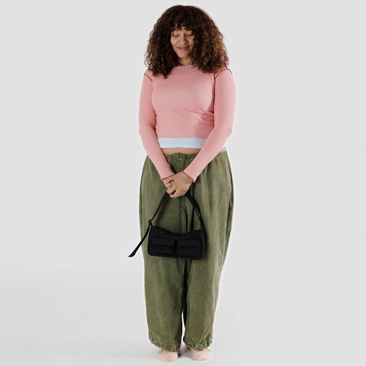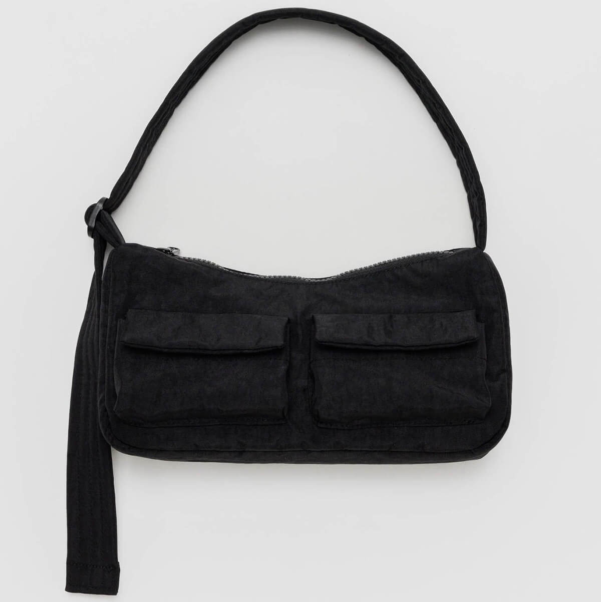 Cargo Shoulder Bag by Baggu. A baguette style purse with two external flap pockets with magnetic closures for easy access to your essentials.