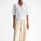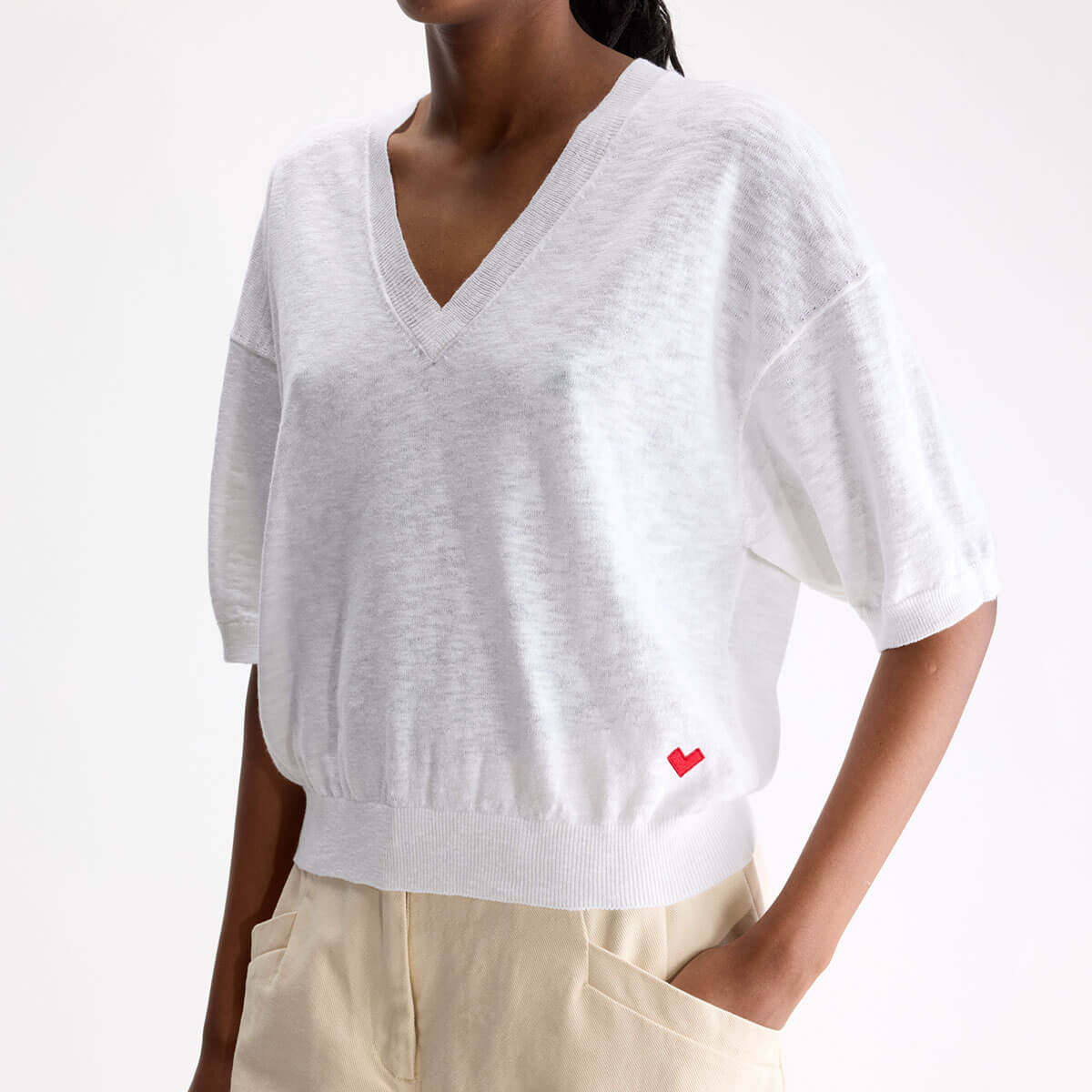 Dadif Sweater by Bellerose. Relaxed fit v-neck jumper in a white cotton and linen blend.