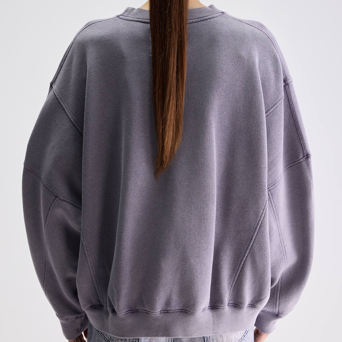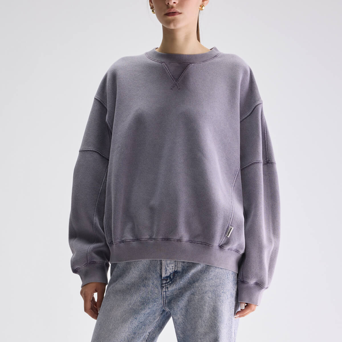 Flips Oversized Sweatshirt by Bellerose. Oversized crewneck sweatshirt in washed purple with exposed seam details and a Bellerose brand label.