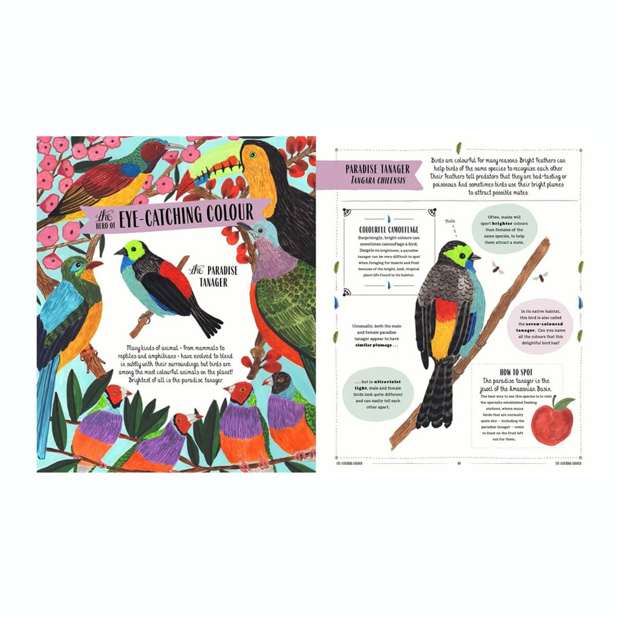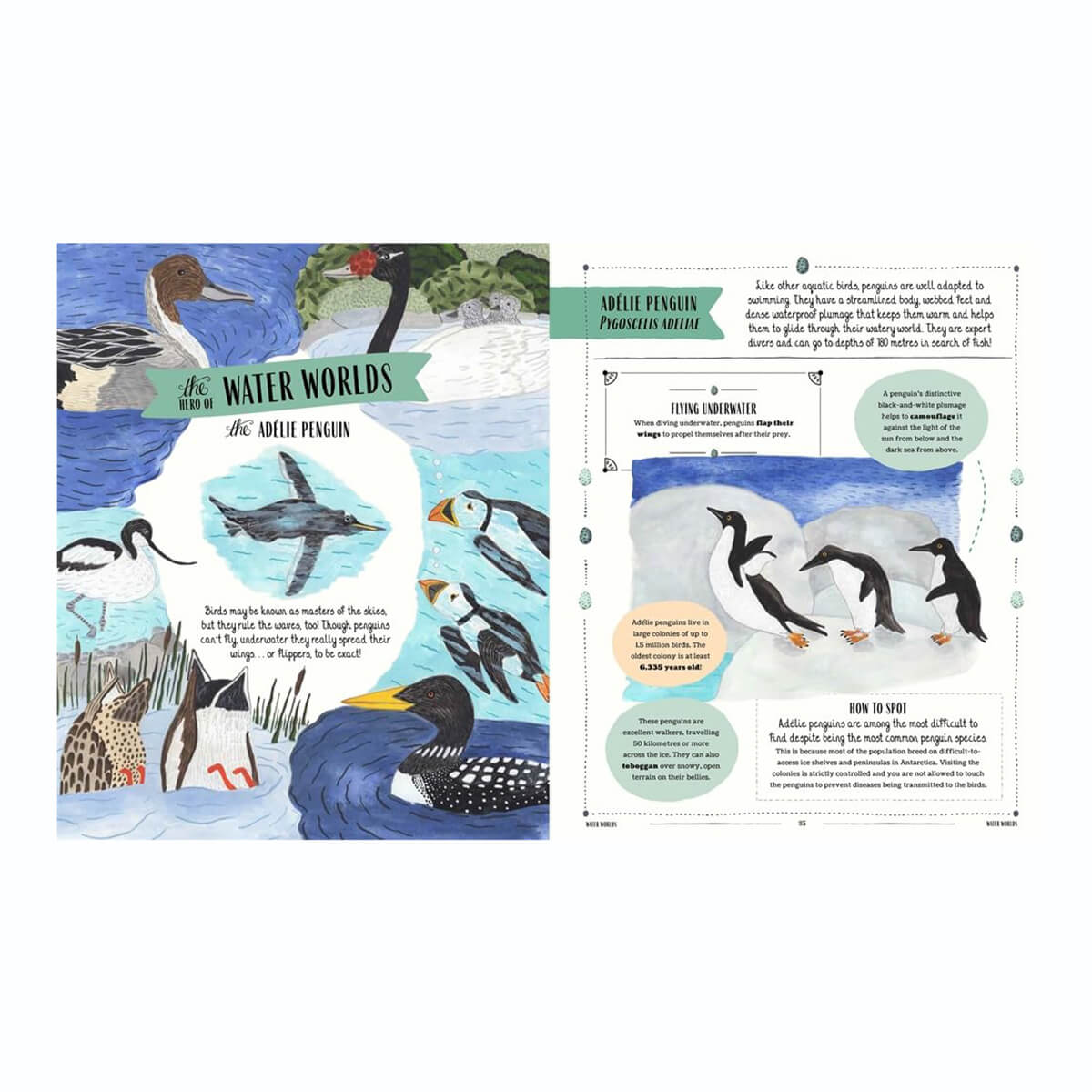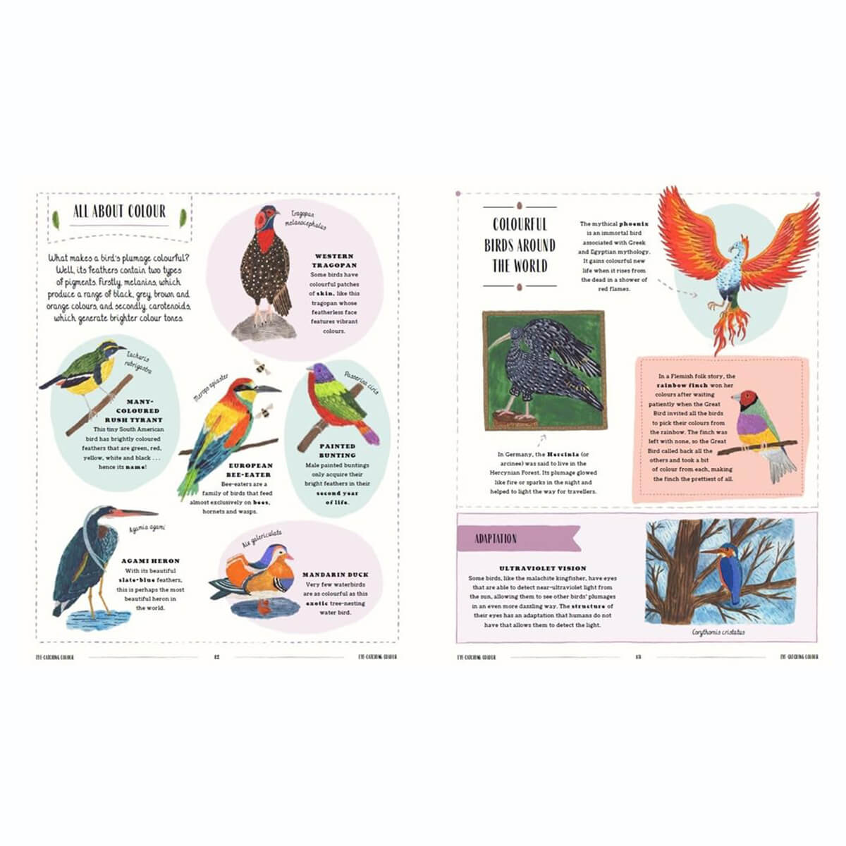 Fly: A Child's Guide to Birds by David Lindo & Sara Boccaccini Meadows. This beautifully crafted book is a stunning introduction to the world of birds. A fully-illustrated guide to the incredible diversity of birdlife around the world for young bird enthusiasts. A stunning collection of more than 150 birds awaits discovery in this beautiful book: meet the lesser flamingo - 'hero of the friendly flock' - and discover other flocking birds, from the chimney swift to the starling, whose murmurations mesmerise birdwatchers from around the world. Next, meet the Adélie penguin - 'hero of the water world' - and discover other birds that are more at home in the sea than the sky, and continue through the avian world as you meet birds with brilliant beaks, fantastic feet, wonderful wings, eye-catching colours and more.