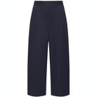 Funi Trousers by ICHI. Wide leg trousers feature a straight, relaxed silhouette and soft finish. Designed with a high waist, pressed front pleats, side pockets, and cropped length for modern structure.