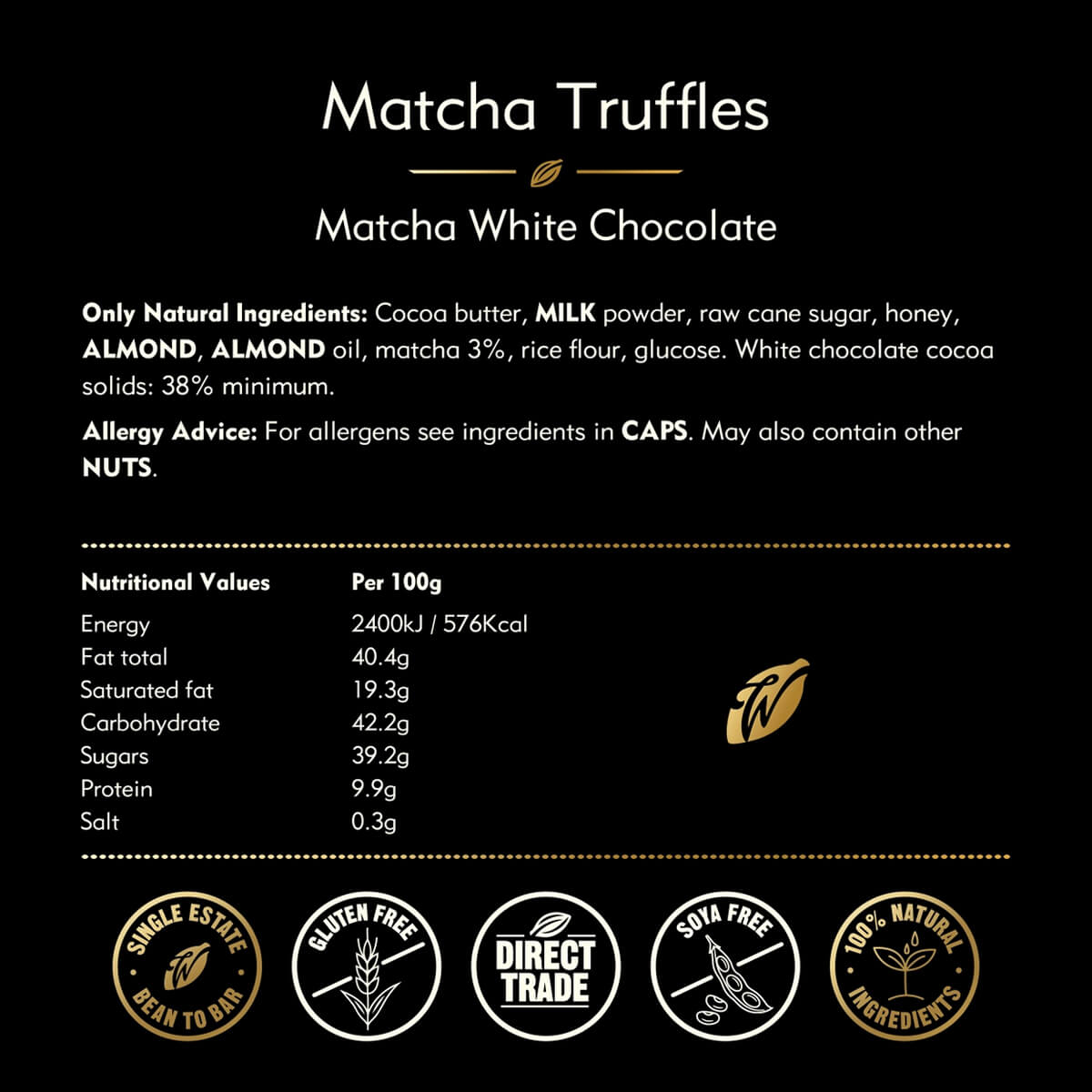 Matcha White Chocolate Praline Truffles. White chocolate cocoa solids: 38% minimum.