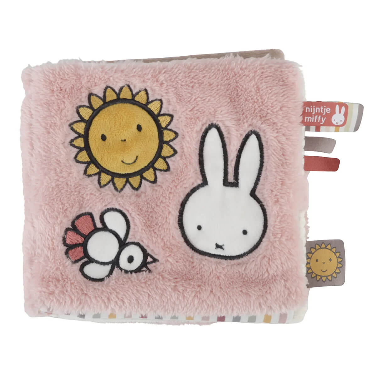 Miffy Activity Book by Little Dutch. This soft book for babies has different textures, crinkly sounds, a squeeker and a mirror for hours of fun. Helps to develop hand eye co-ordination and stimulate babies' senses.