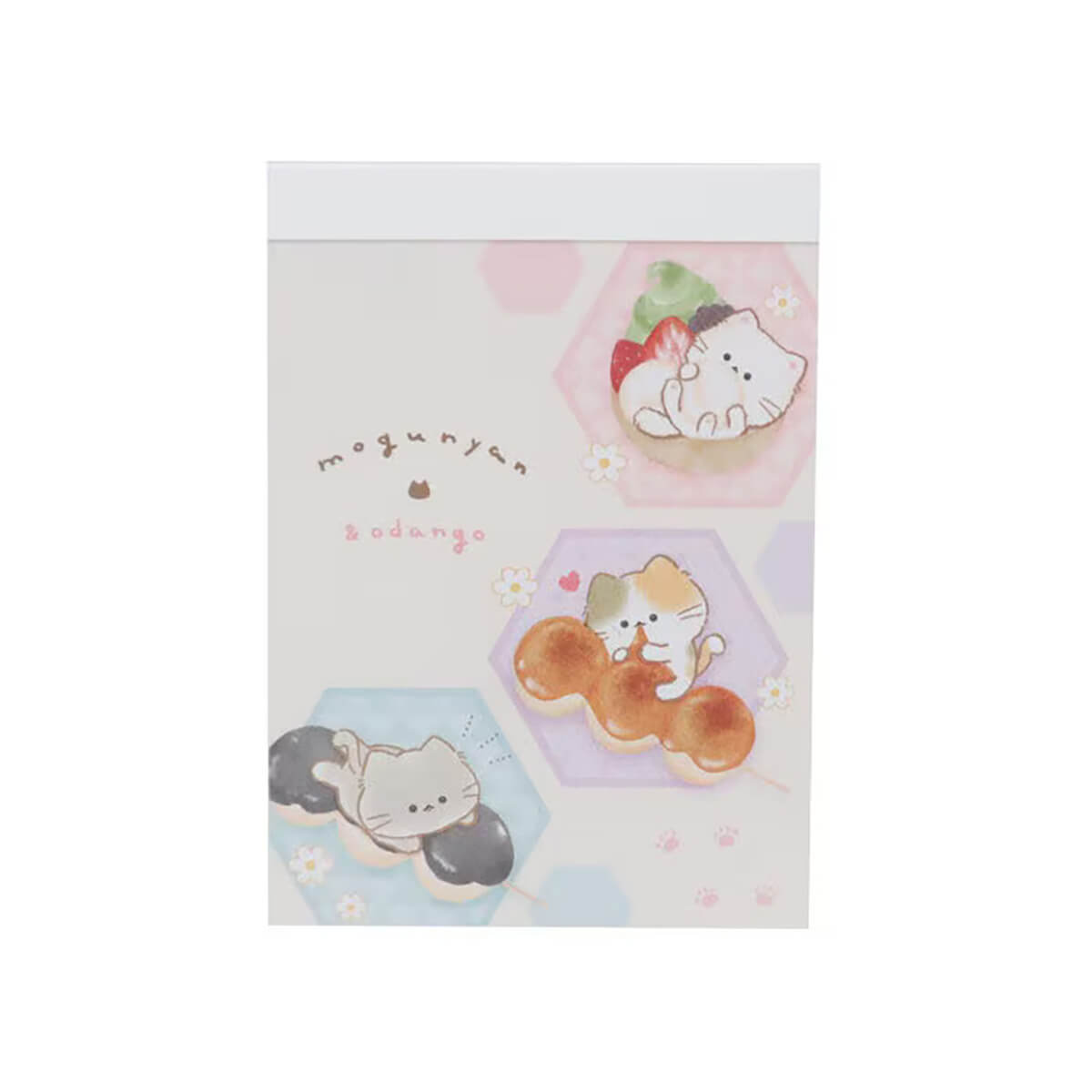 Mogu-Nyan Dango Small Memo Pad by Kamio Japan. Adorable miniature memo pad featuring cats eating desserts! There is a sweet illustration on every page.