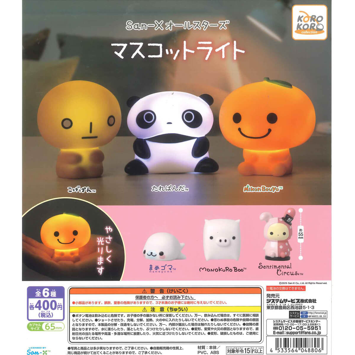 San-X Mascot Light Gachapon Capsule Collectible by Koro Koro. Highly collectible and authentic Japanese gachapon capsule containing one of six different mini lights in the shape of San-X's favourite characters. There is a switch on the bottom to turn the light on and off.