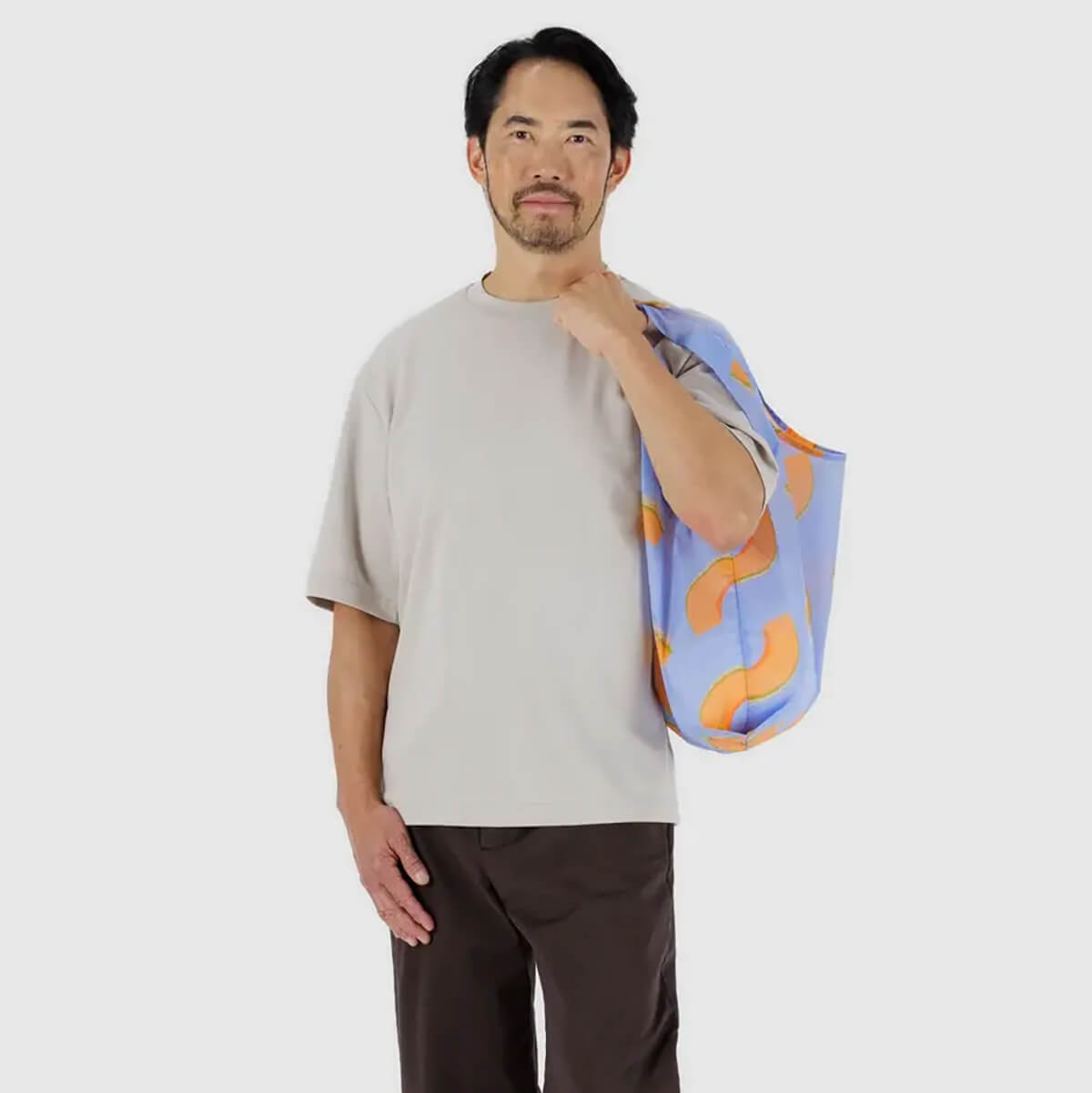 Standard bag by Baggu. Baggu's best selling reusable bag isn't just for the grocery store, it goes everywhere and hauls almost anything. Carries 2-3 plastic grocery bags worth of stuff comfortably in hand or over your shoulder.