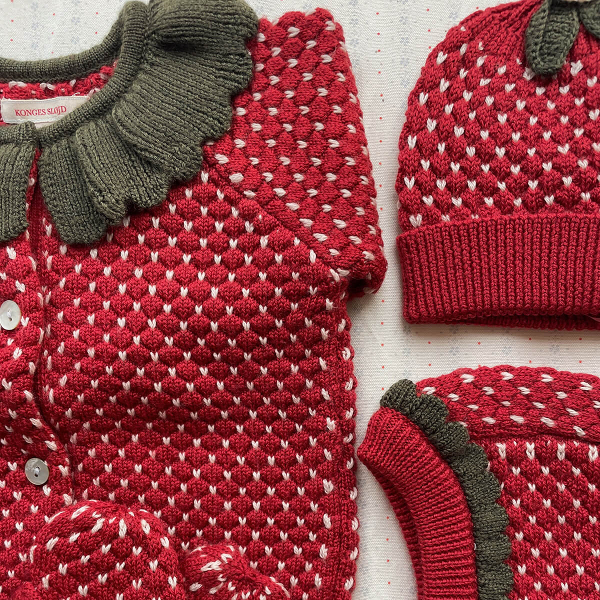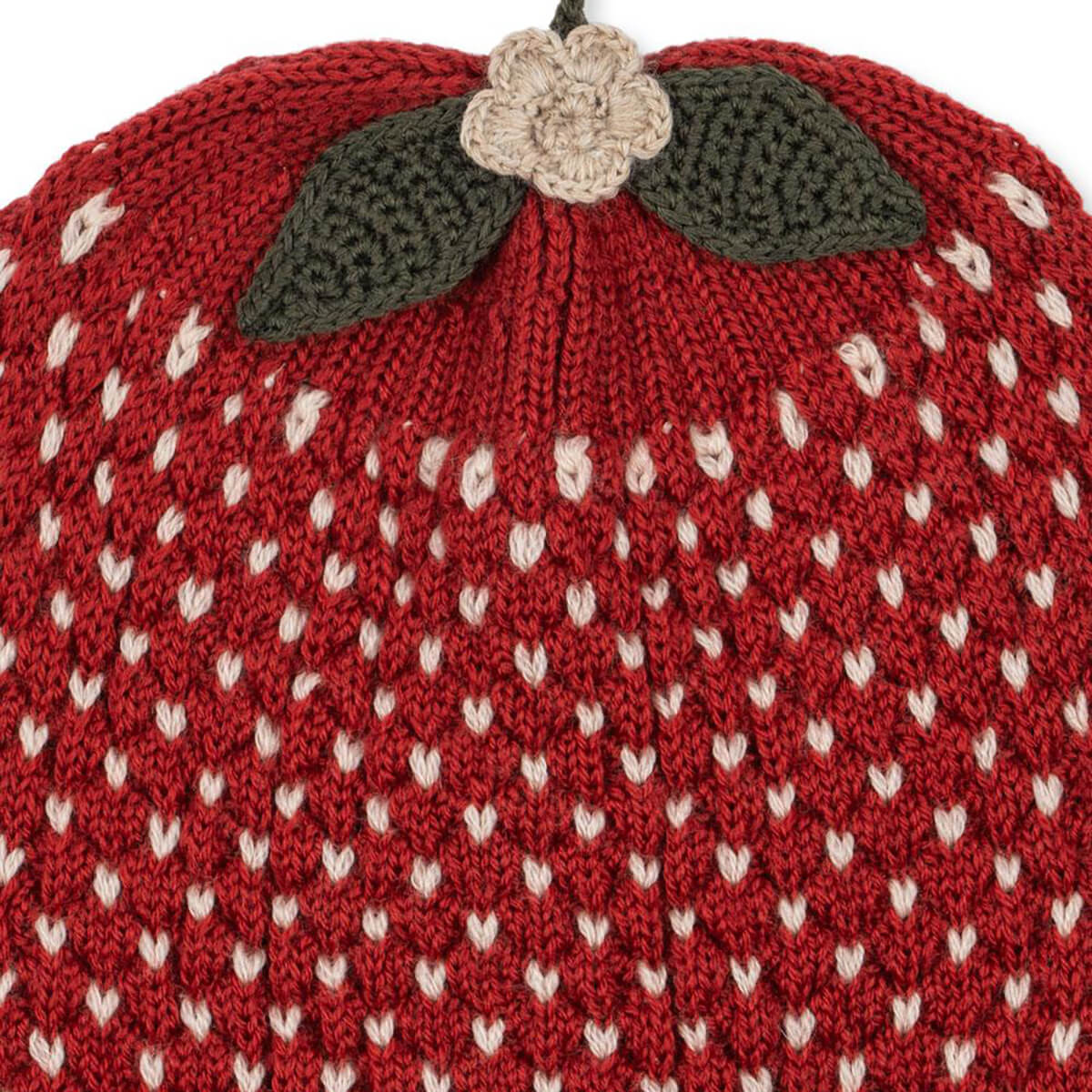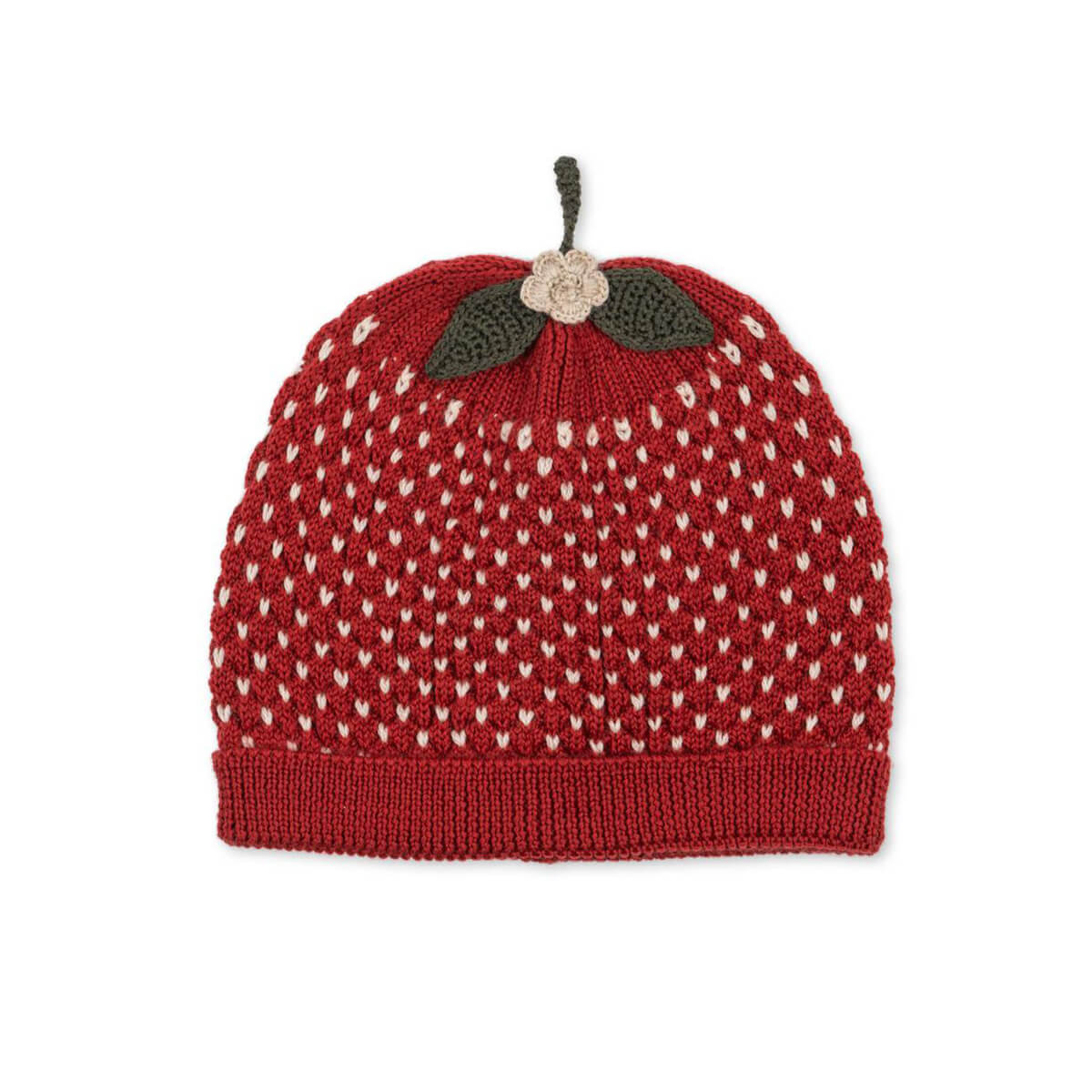 Strawberry Beanie by Konges Sløjd. Soft strawberry beanie made from 100% merino wool. A cute little winter accessory in a breathable and warm material that is perfect for insulation.